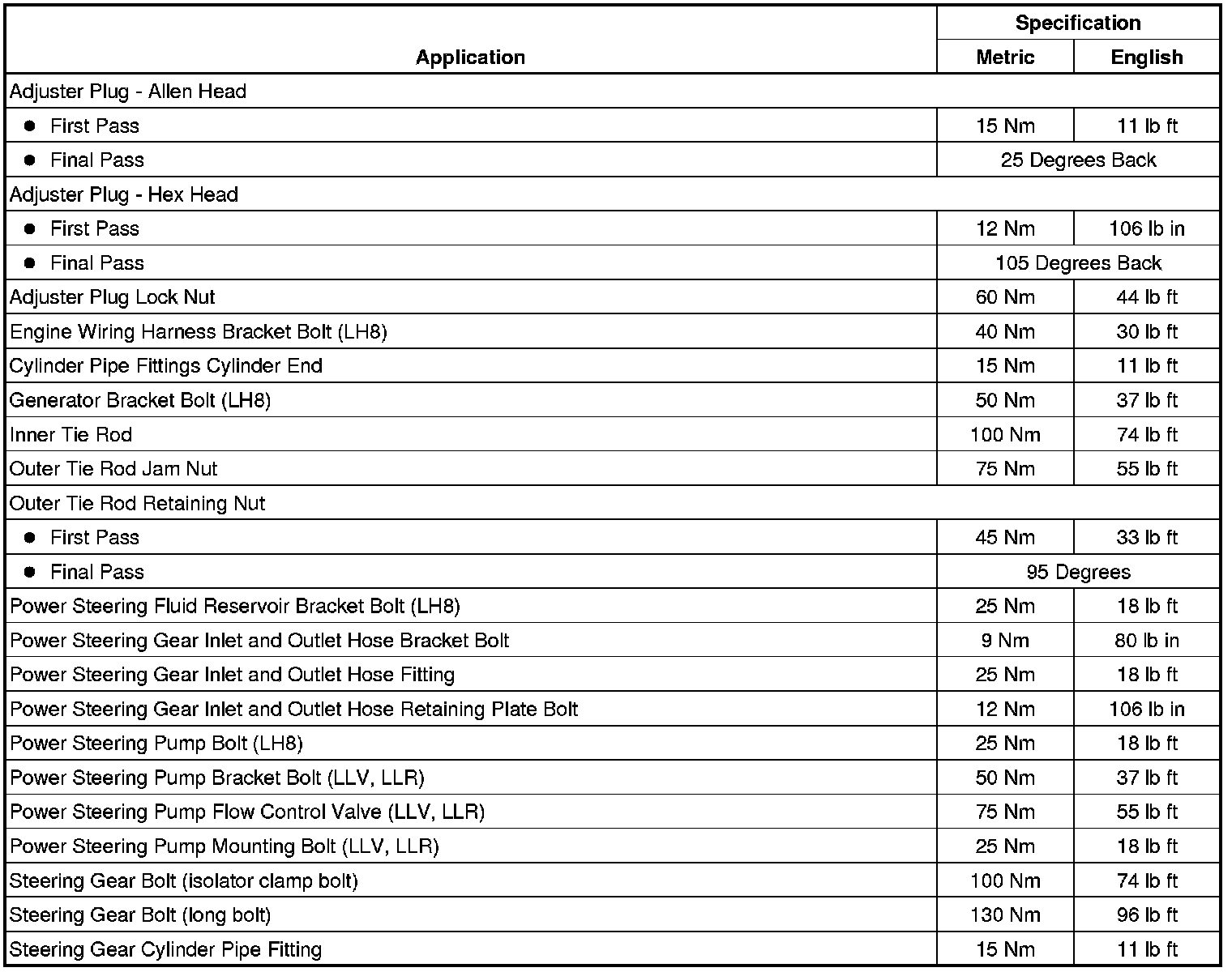 Fastener Tightening Specifications