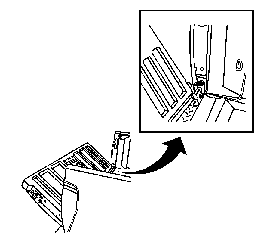 9. Remove the endgate hinge from the endgate. Refer to Endgate Lower Hinge Replacement - Endgate Side (Endgate Lower Hinge Replacement - Endgate Side).