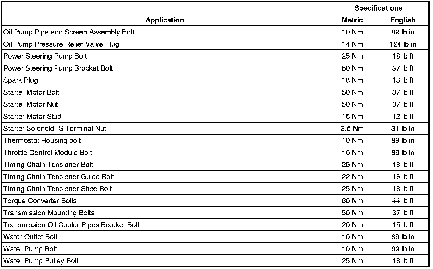 Fastener Tightening Specifications