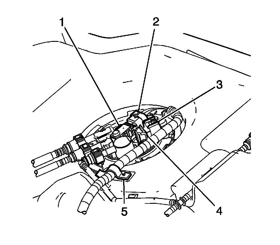 4. Disconnect the chassis wiring harness electrical connector from the fuel tank pressure sensor (1).