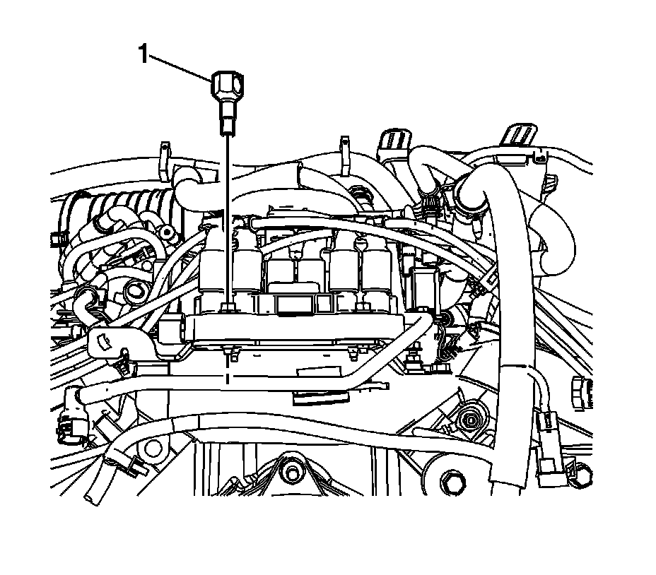 1. If installing the old oil pressure sensor fitting (1), apply sealant to the threads of the fitting. Refer to Adhesives, Fluids, Lubricants, and Sealers (Adhesives, Fluids, Lubricants, and Sealers) for the correct part number.
