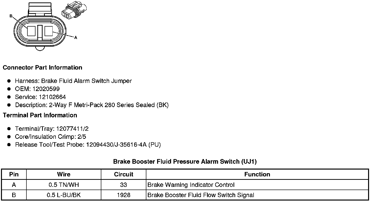 Brake Booster Fluid Flow Alarm Switch X1 (UJ1)