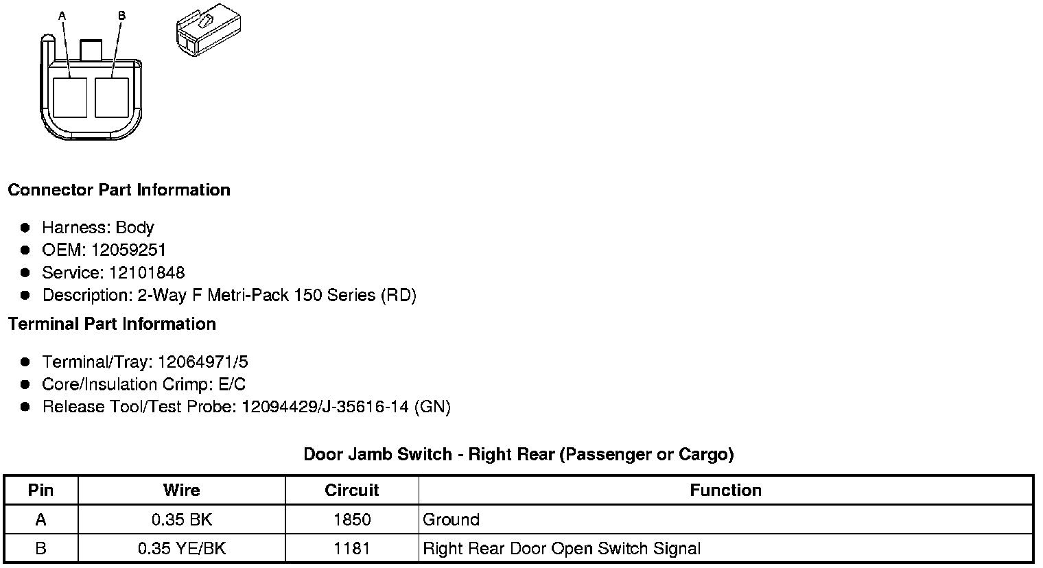 Door Jamb Switch - Right Rear (Passenger or Cargo)