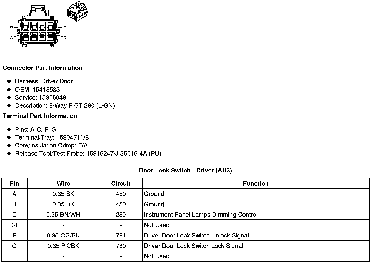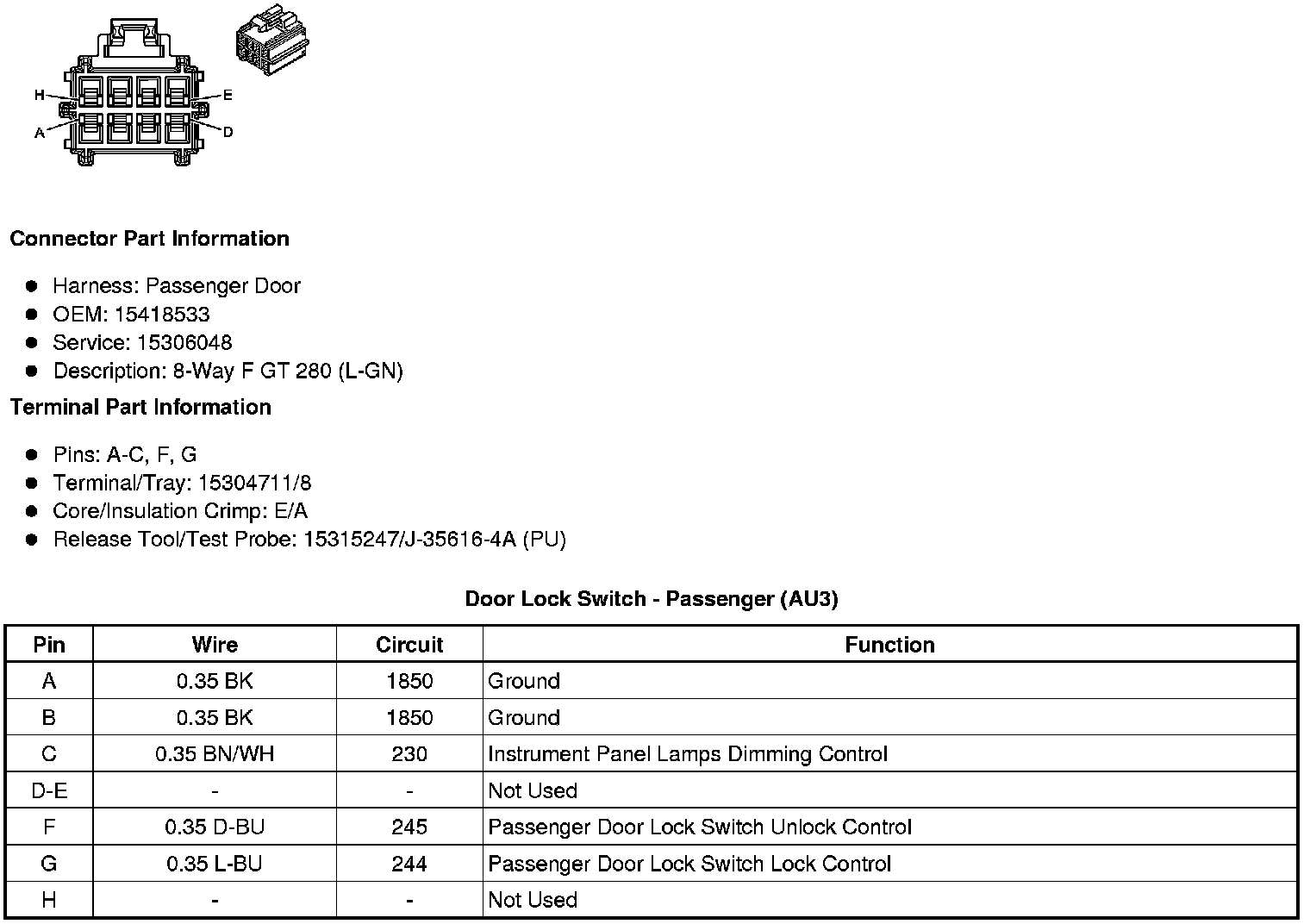 Door Lock Switch - Cargo (Passenger or Cargo with AU3)