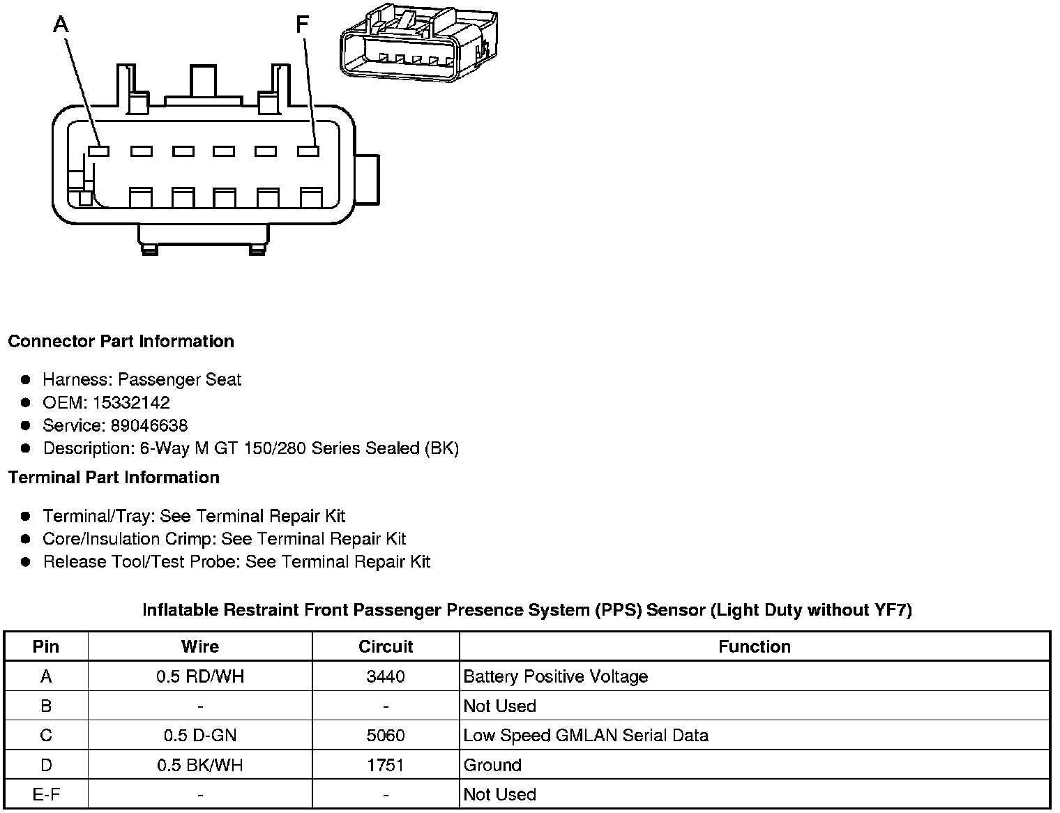 Inflatable Restraint Front Passenger Presence System (PPS) Sensor (Light Duty without YF7)