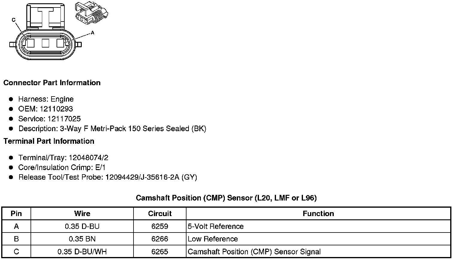 Camshaft Position (CMP) Sensor (L20, LMF or L96)
