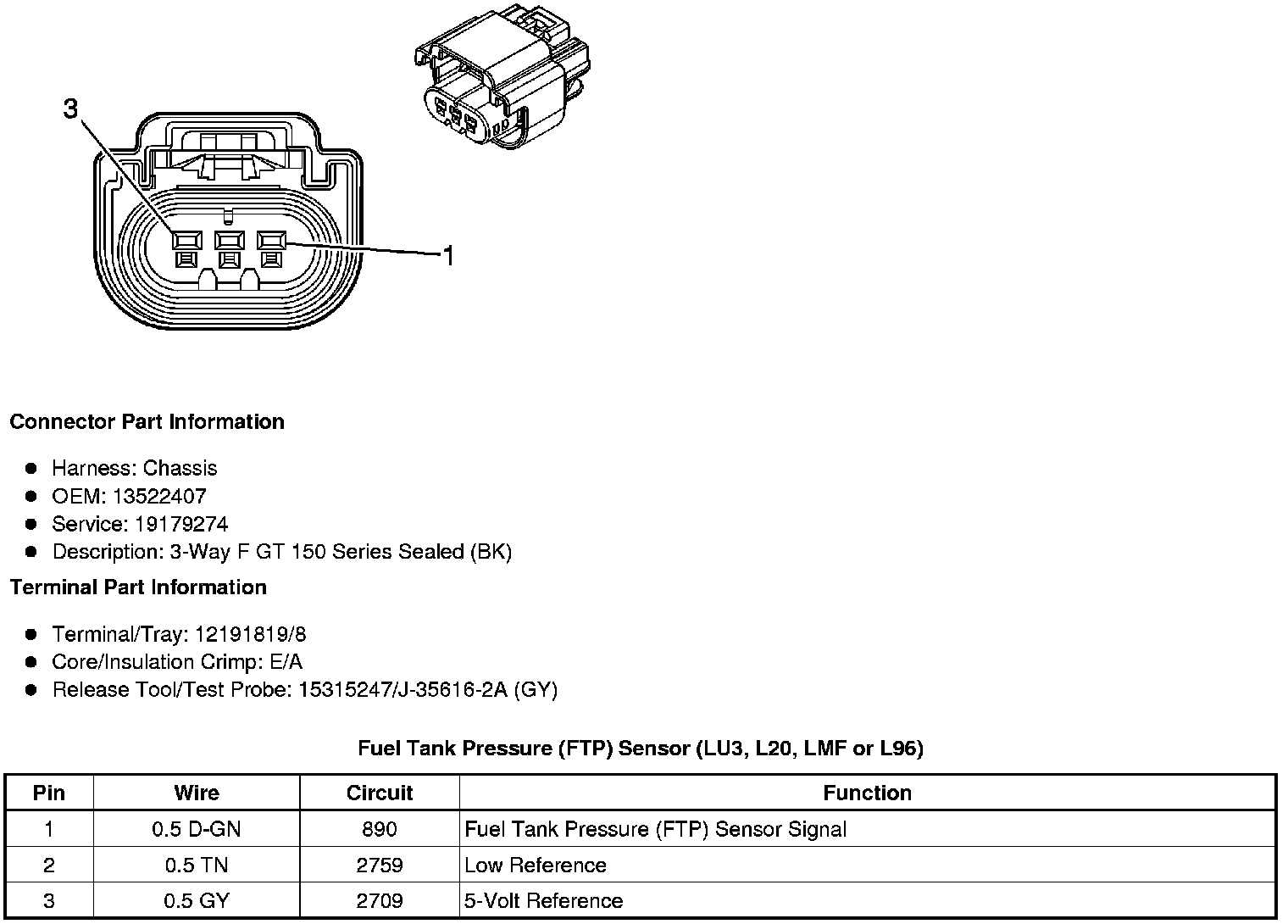 Fuel Tank Pressure (FTP) Sensor (LU3, L20, LMF or L96)
