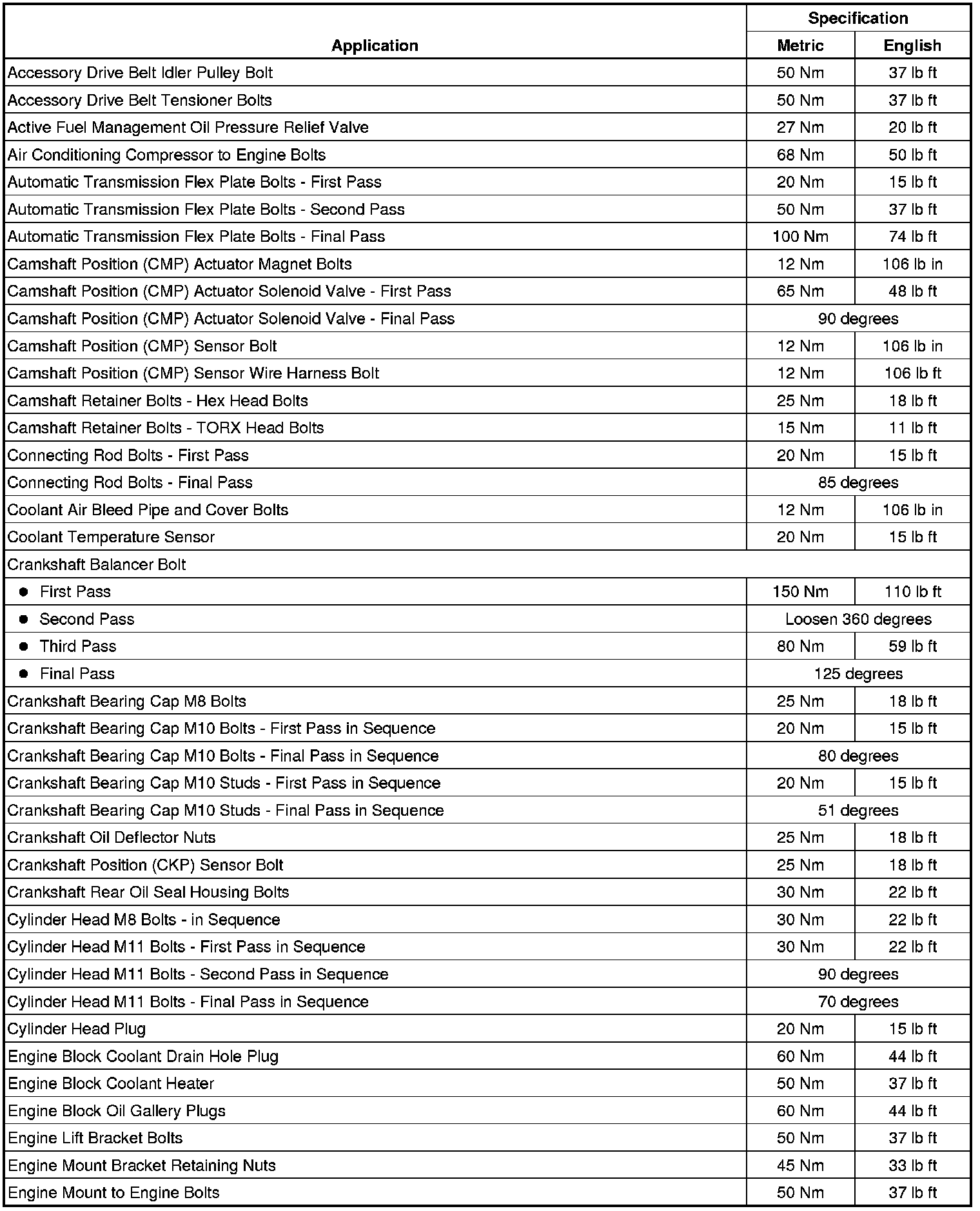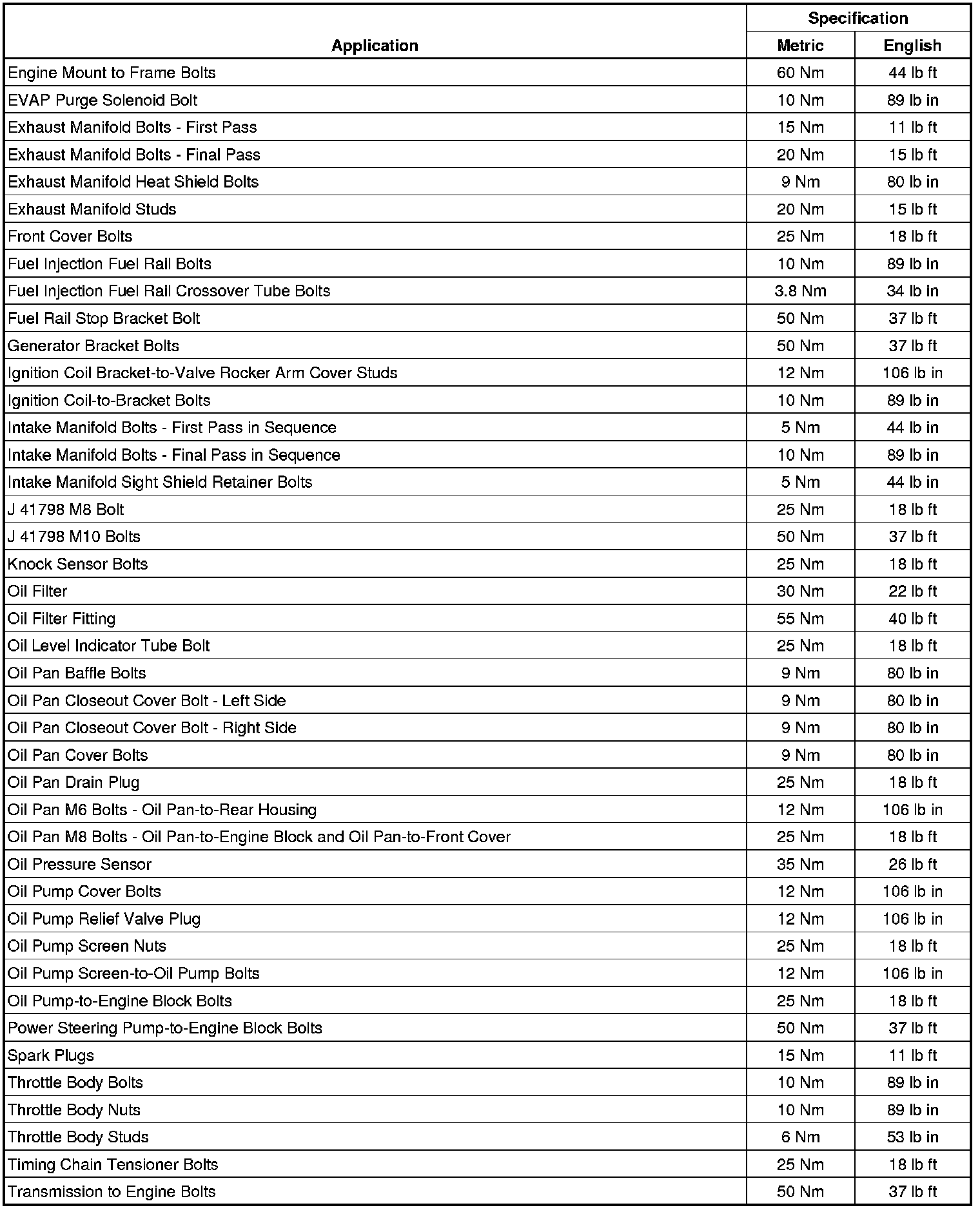Fastener Tightening Specifications