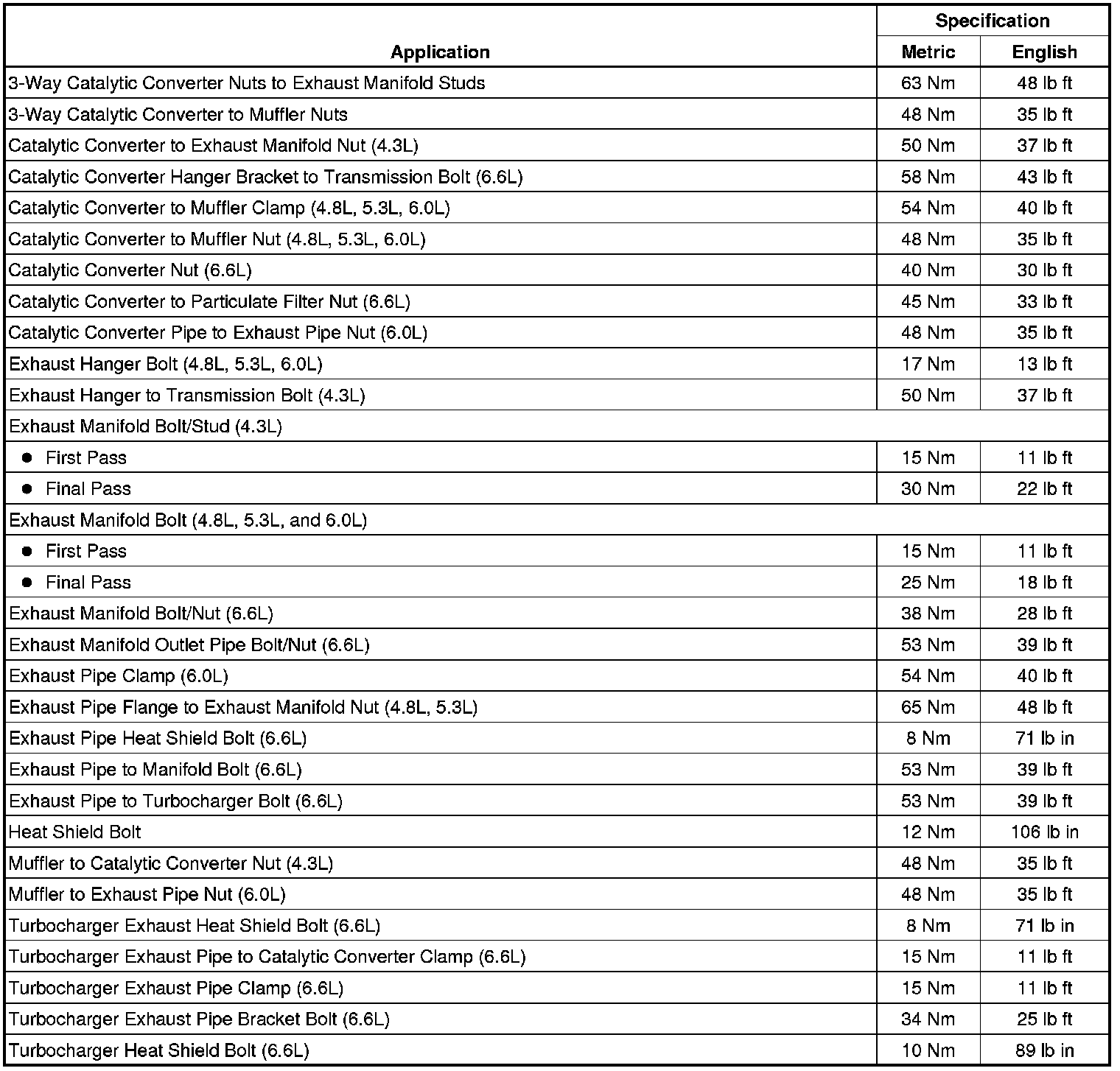 Fastener Tightening Specifications