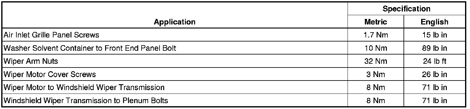 Wiper and Washer Systems: Specifications
