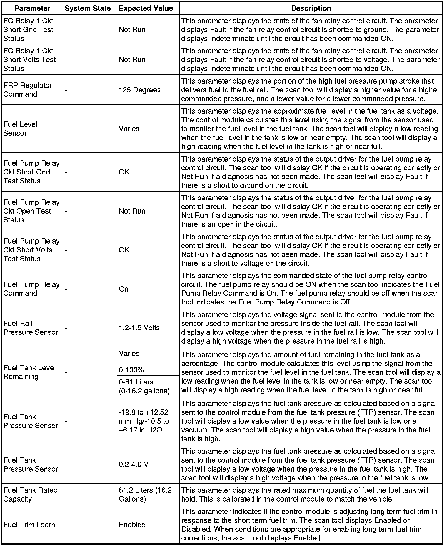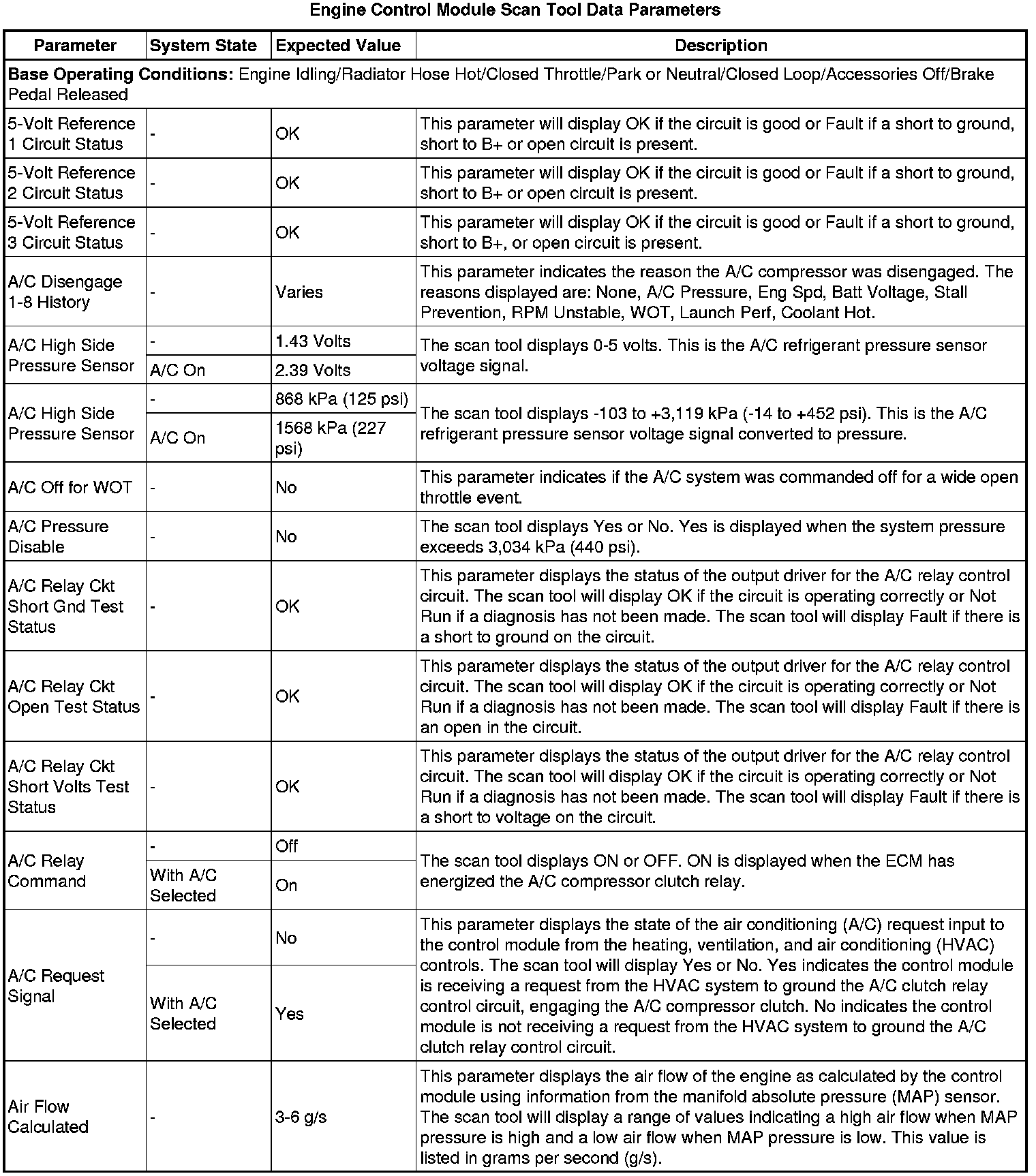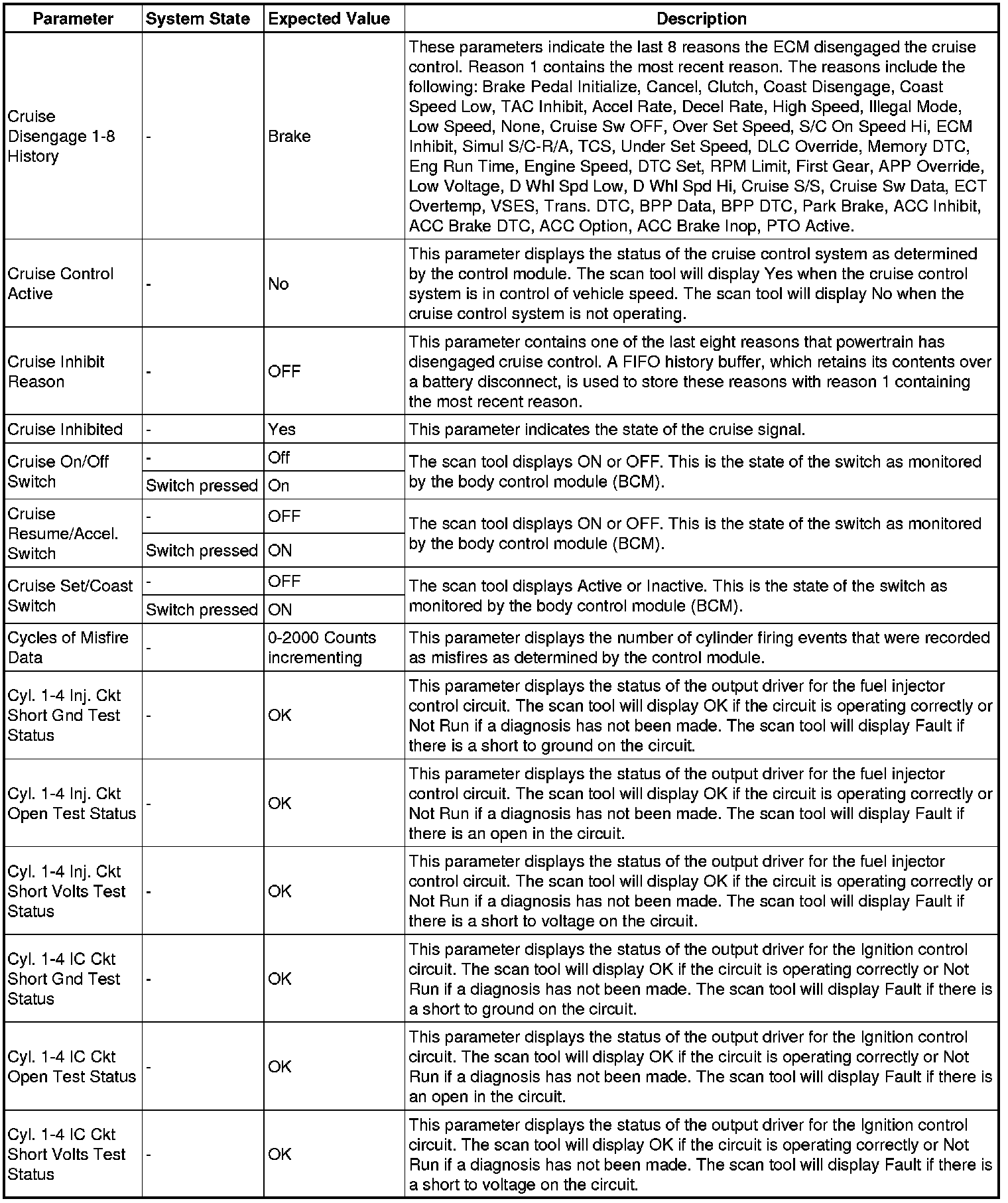 The Engine Control Module Scan Tool Data List contains all engine-related parameters that are available on the scan tool. The list is arranged in alphabetical order. A given parameter may appear in any one of the data lists, and in some cases may appear more than once, or in more than one data list in order to group certain related parameters together.