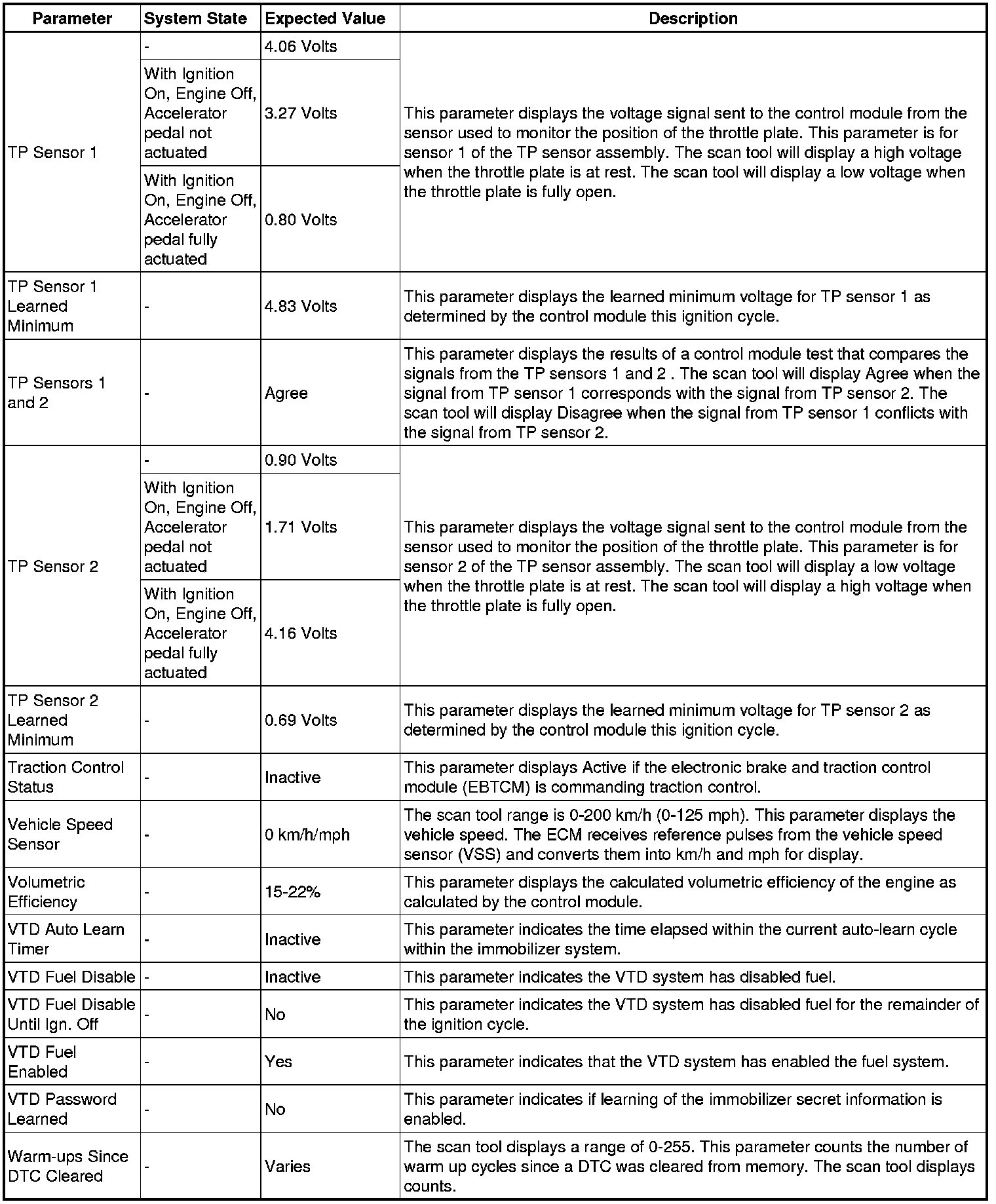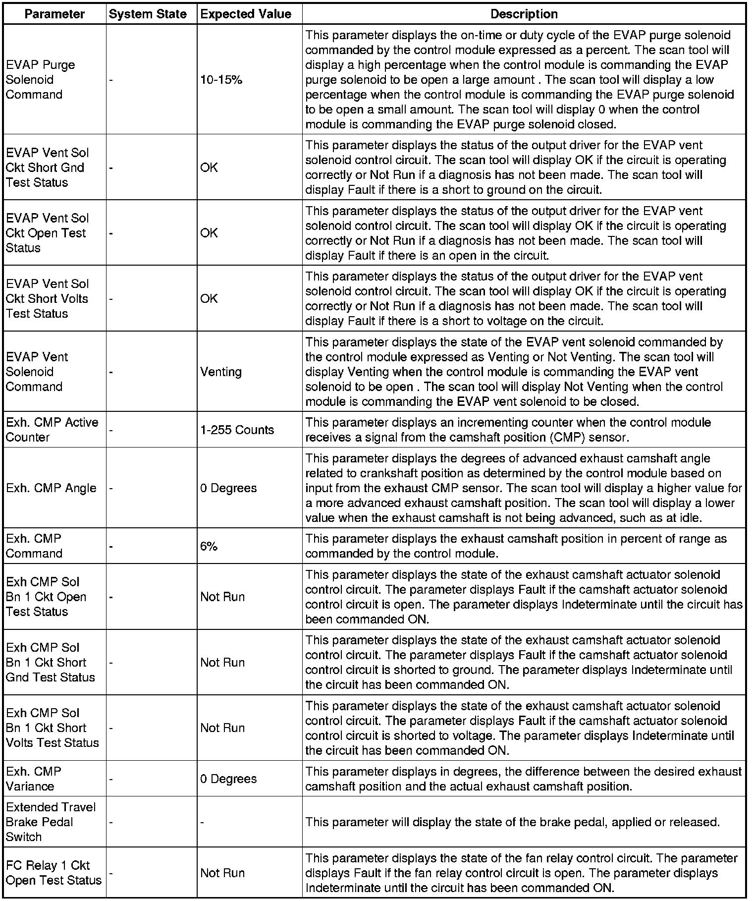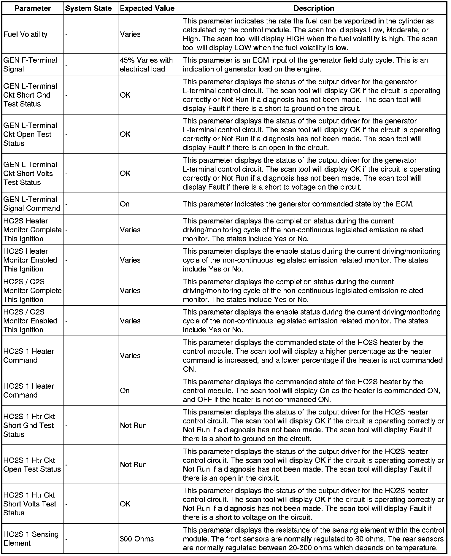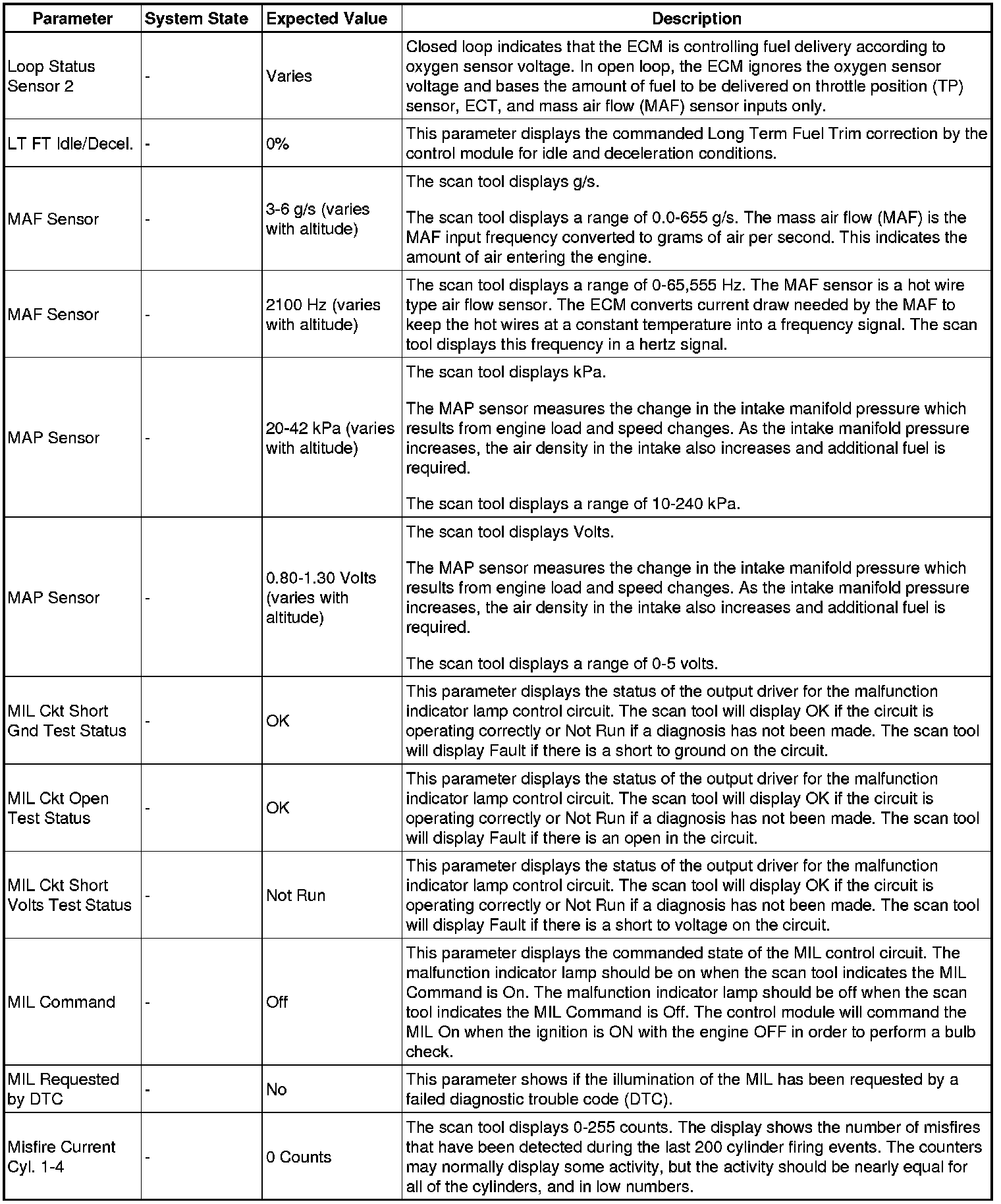 Only the parameters listed below are referenced in this service manual for use in diagnosis. If all values are within the typical range described below, refer to Symptoms - Engine Controls (Symptoms - Engine Controls) for the 2.0L engine for diagnosis.