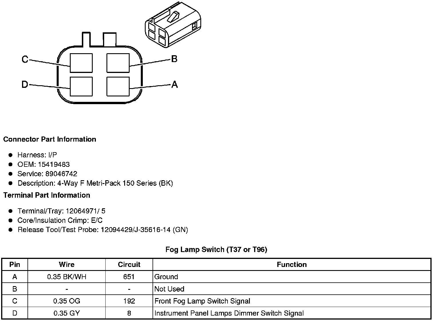 Fog Lamp Switch (T37 or T96)