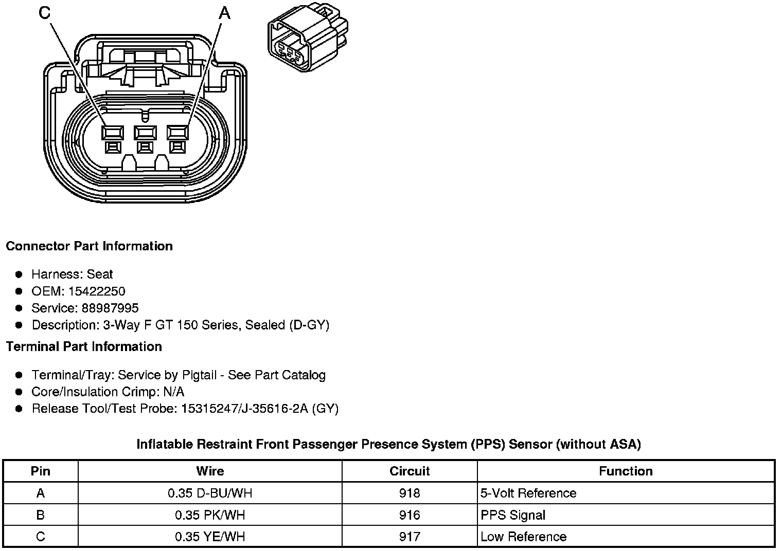 Inflatable Restraint Front Passenger Presence System (PPS) Sensor (without ASA)