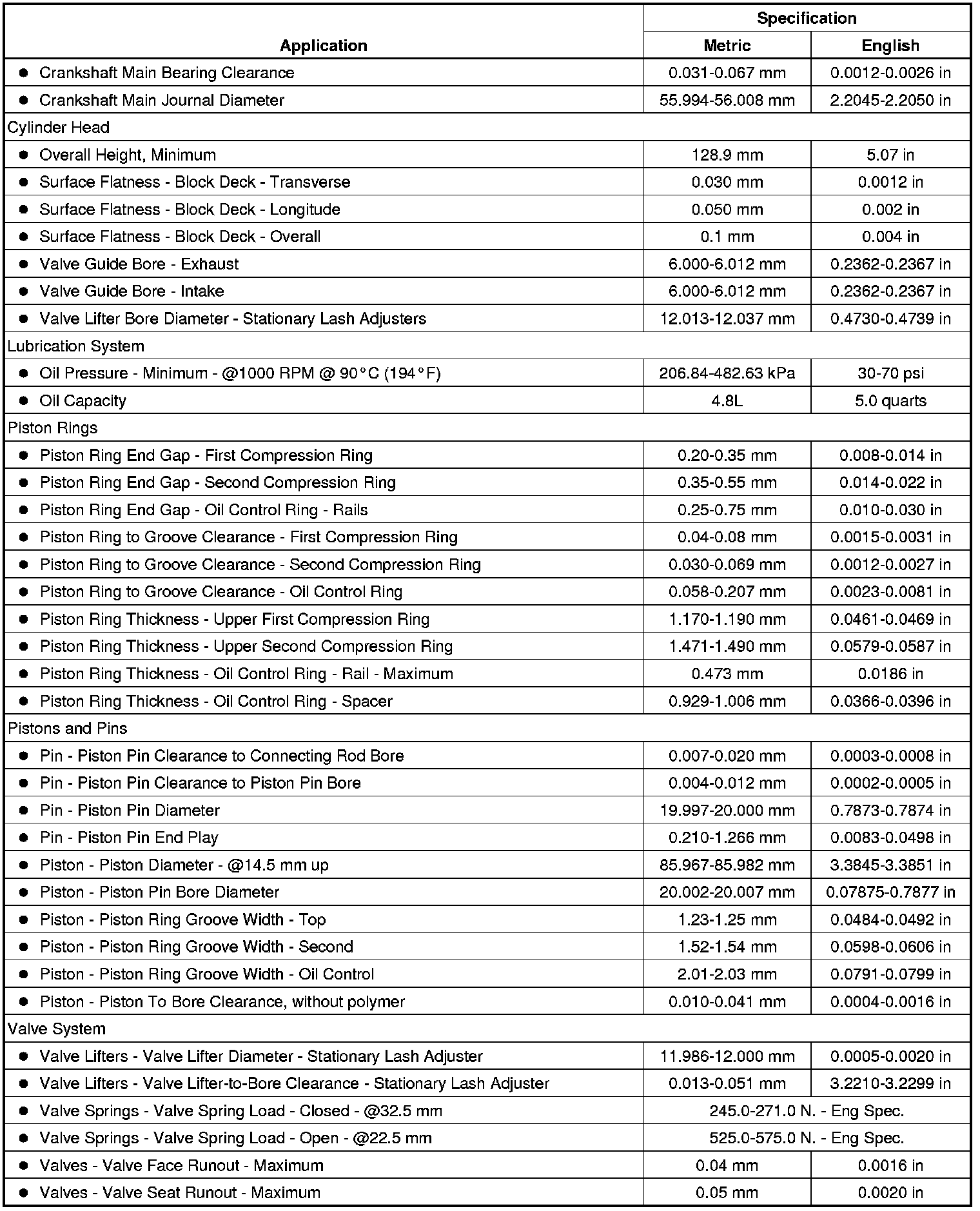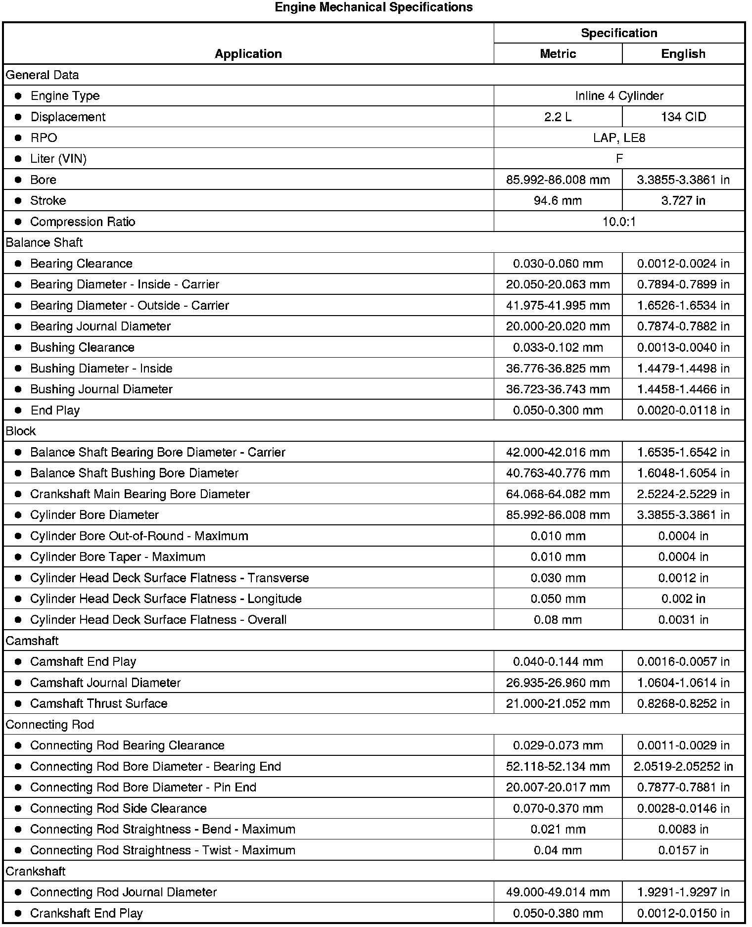 Engine Mechanical Specifications (LAP, LE8) (2.2L)
