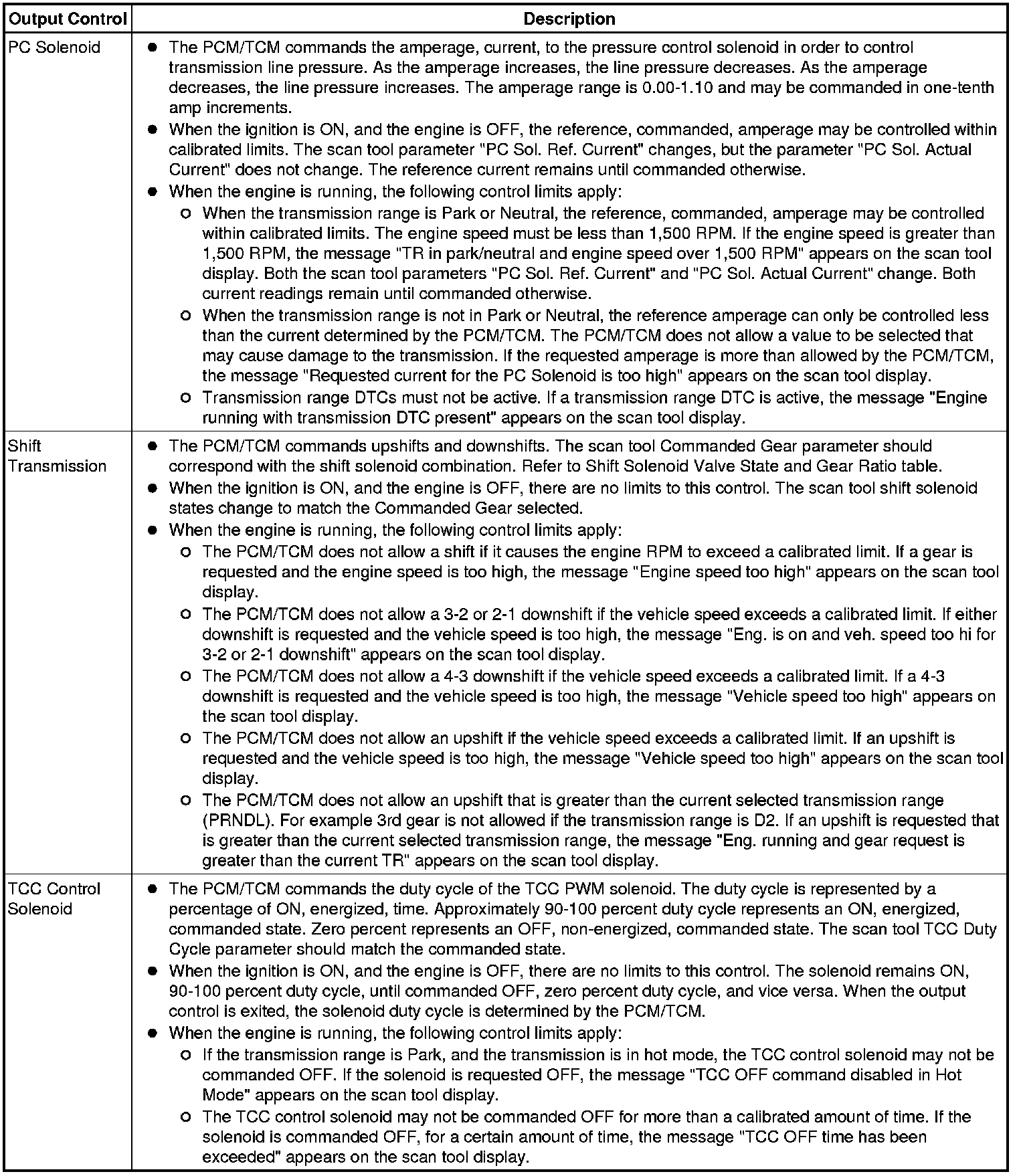The Transmission Control Module Scan Tool Data List contains all transmission related parameters that are available on the scan tool. The list is arranged in alphabetical order. A given parameter may appear in any one of the data lists, and in some cases may appear more than once, or in more than one data list in order to group certain related parameters together.