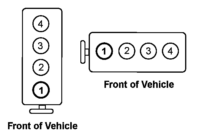 The cylinders are numbered 1 through 4 starting from the crankshaft pulley.