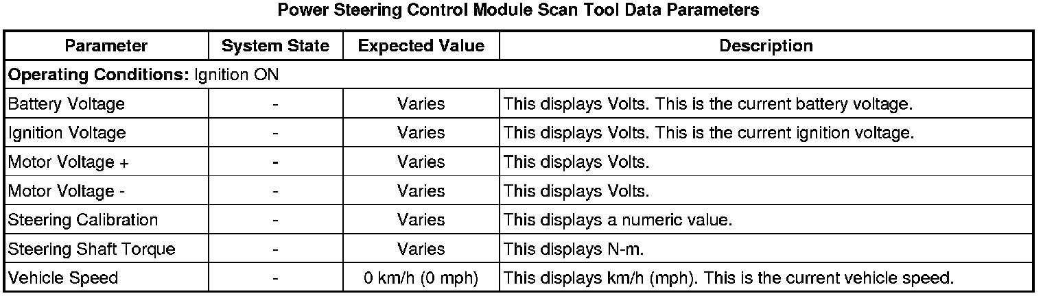 Control Module Scan Tool Information (Except 2.0L)