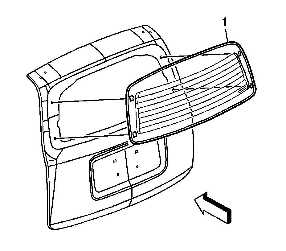 2. Remove the liftgate window trim panel. Refer to Liftgate Trim Panel Replacement (Liftgate Trim Panel Replacement).