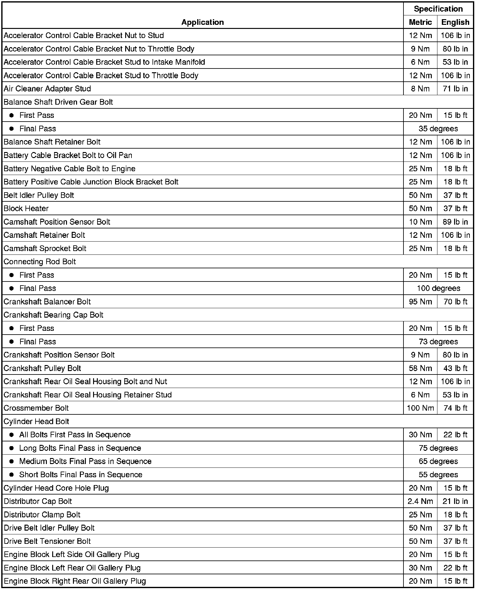 Fastener Tightening Specifications