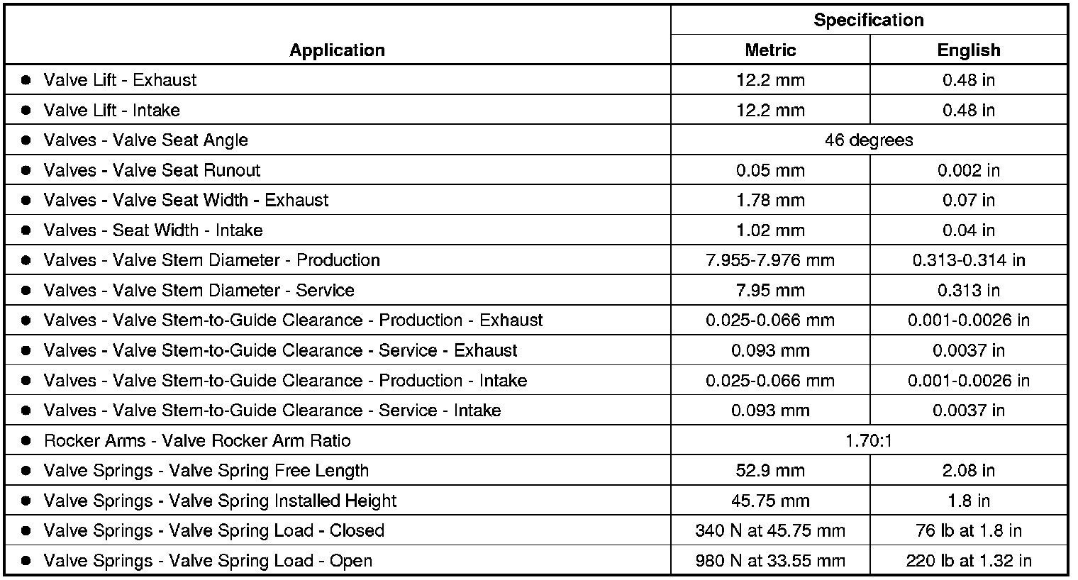 Engine Mechanical Specifications (RPO L20 VIN A)