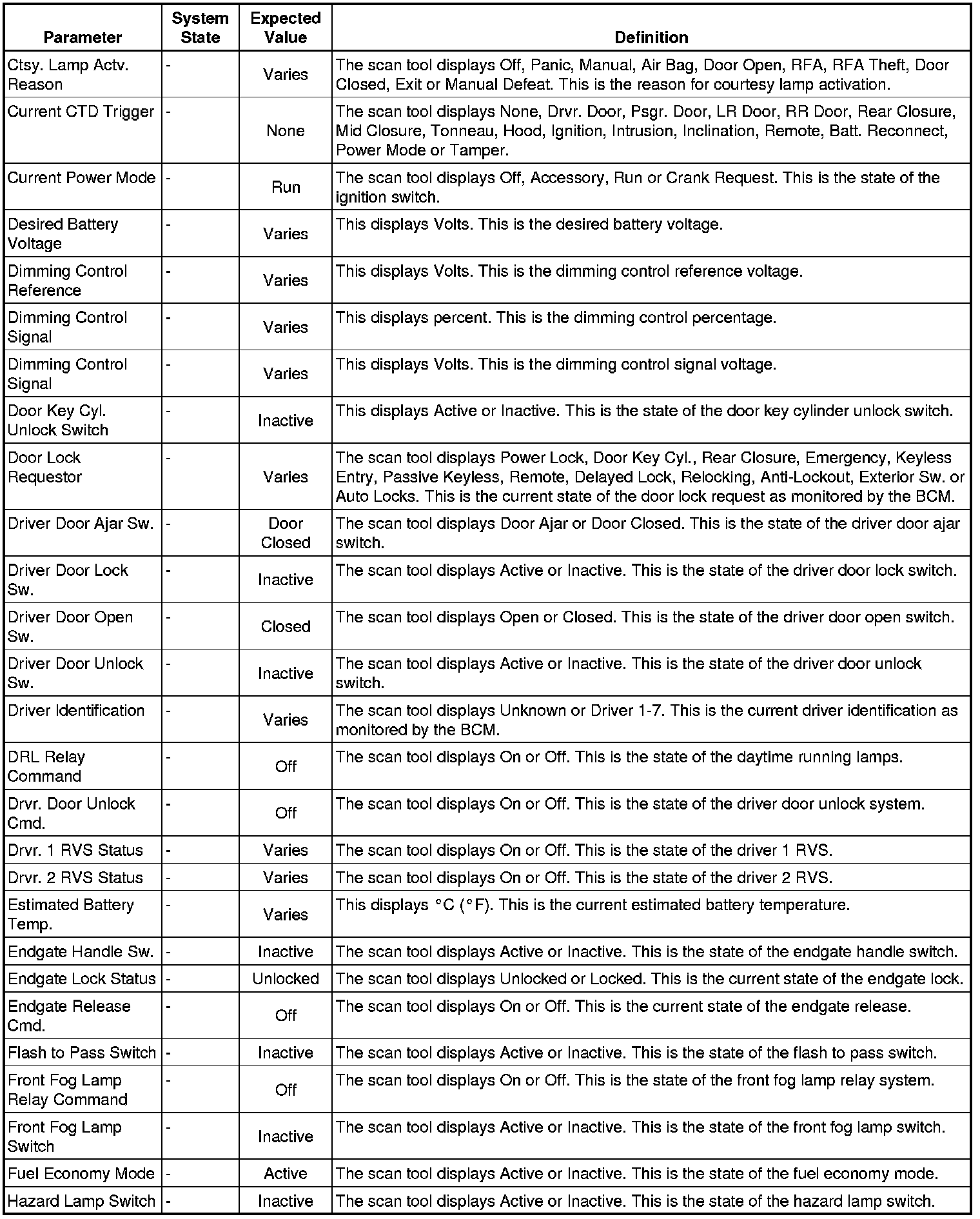 Body Control Module Scan Tool Information