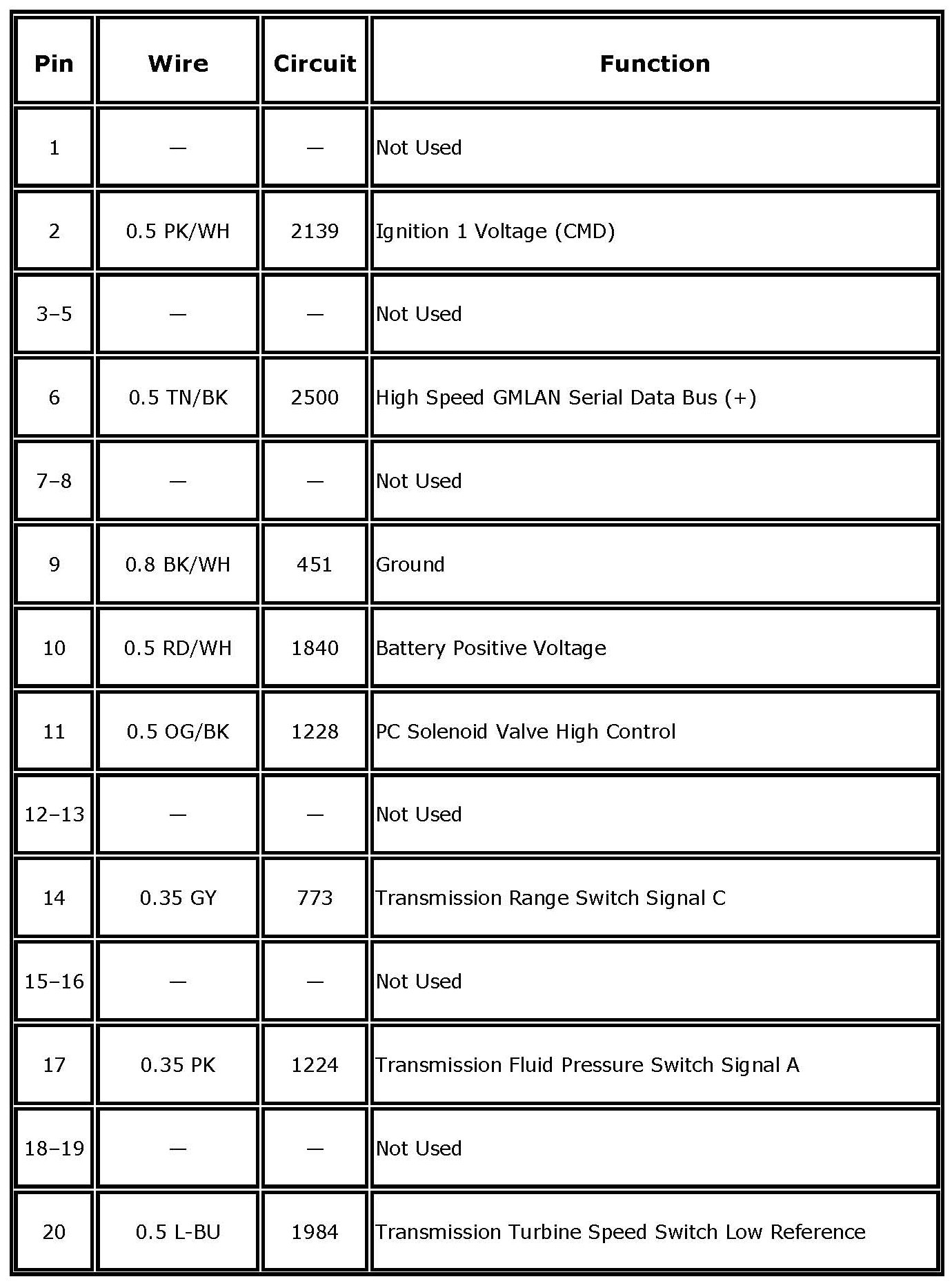 TRANSMISSION CONTROL MODULE (TCM) RPO M30