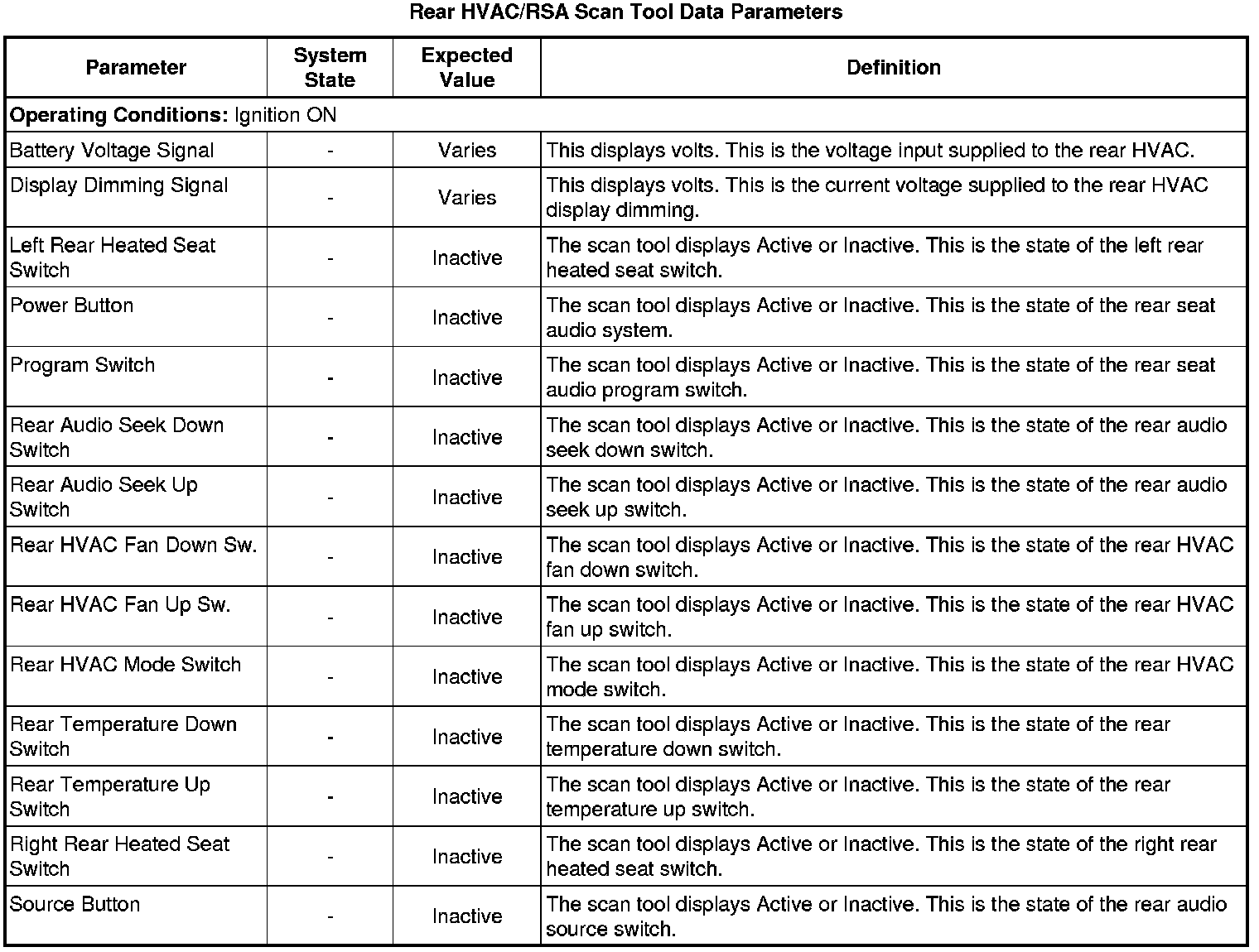 Auxiliary Heater and Air Conditioning Control Module Scan Tool Information