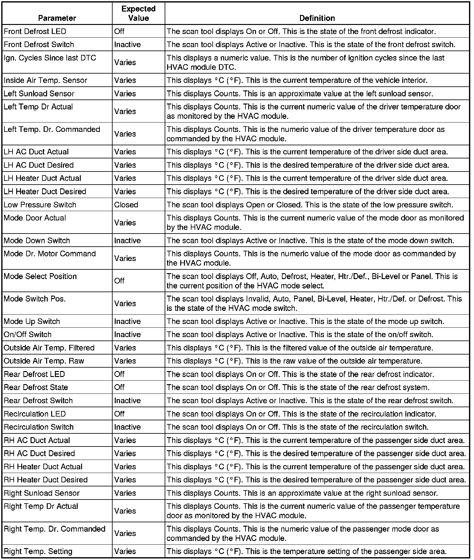 Heating, Ventilation and Air Conditioning Control Module Scan Tool Information