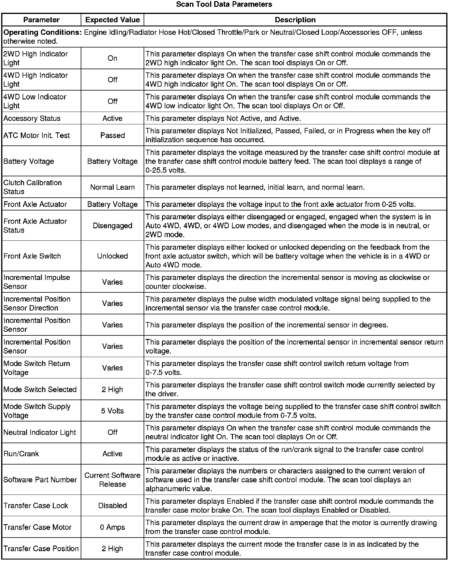 Transfer Case Shift Control Module Scan Tool Information (MP 1625/1626-NQF)