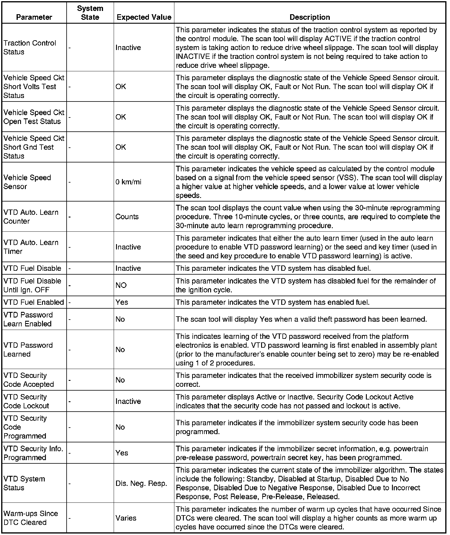Only the parameters listed below are referenced in this service manual for use in diagnosis.