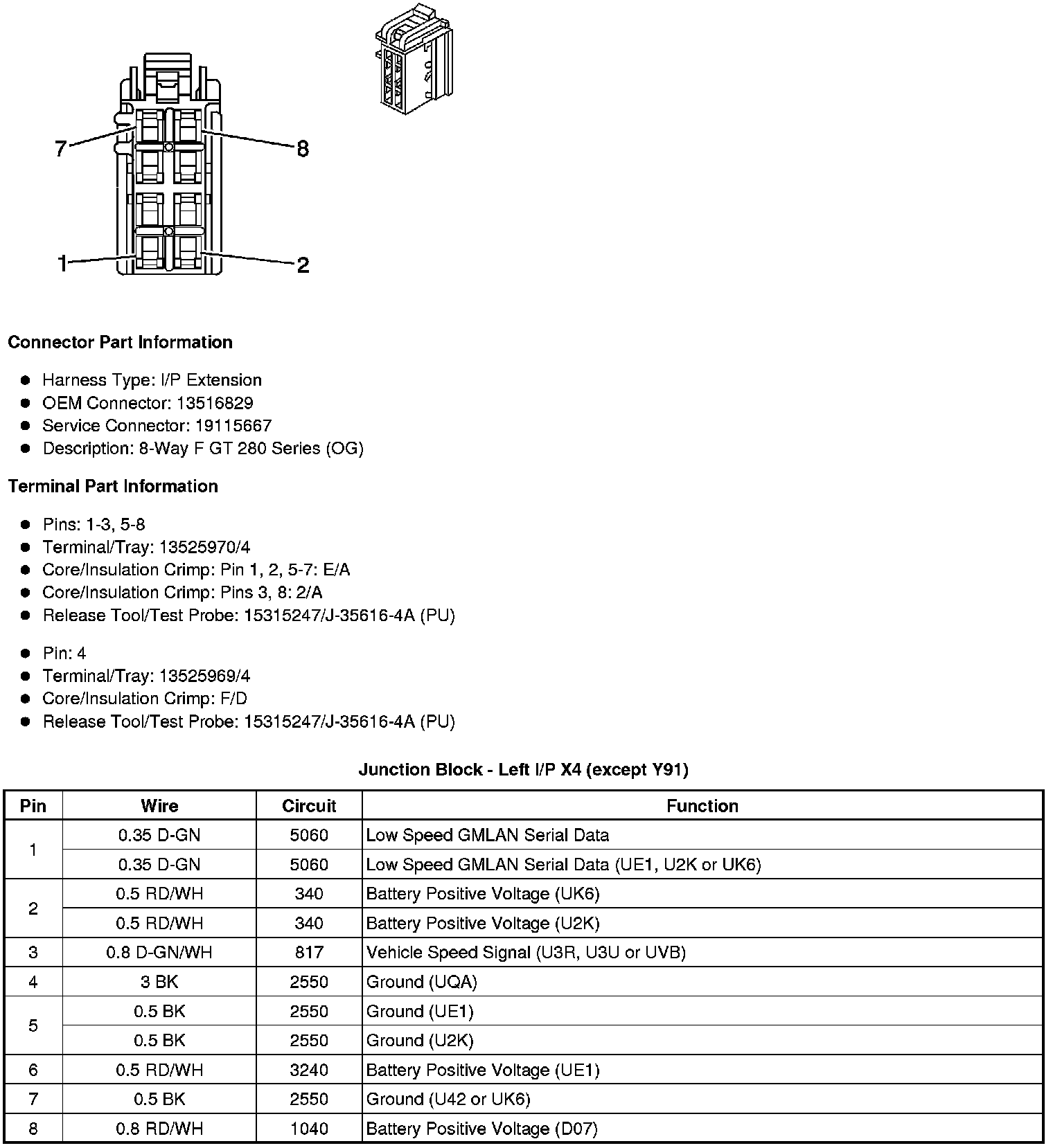 Junction Block - Left I/P X4 (except Y91)