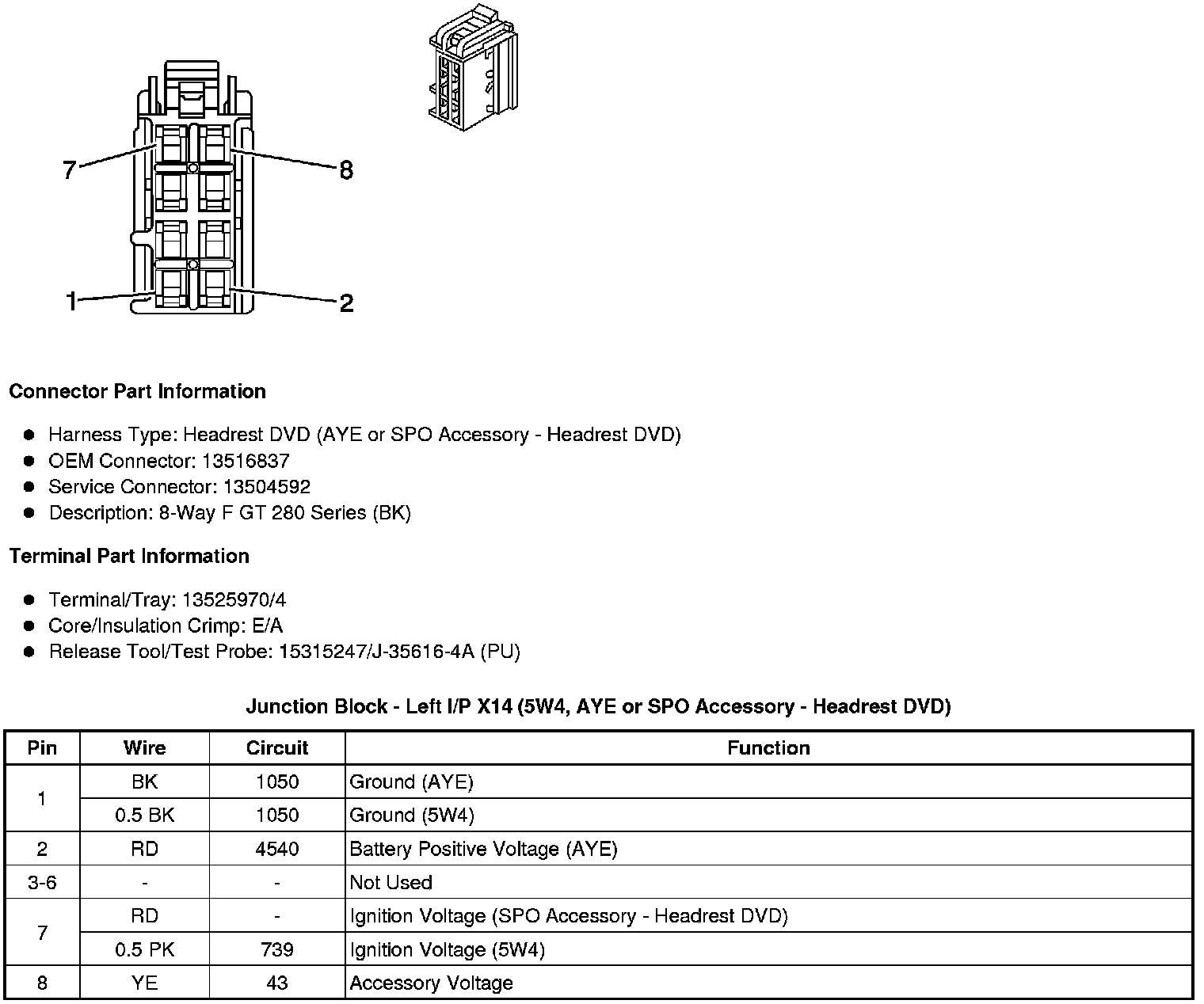 Junction Block - Left I/P X14 (5W4, AYE or SPO Accessory - Headrest DVD)