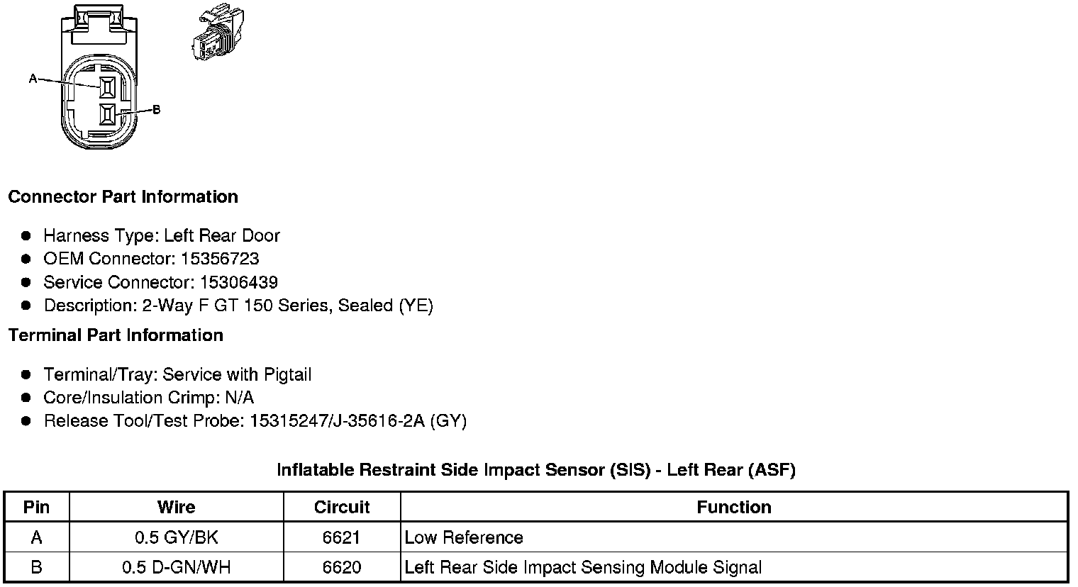 Inflatable Restraint Side Impact Sensor (SIS) - Left Rear (ASF)