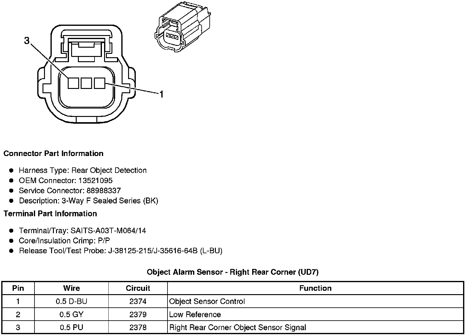 Object Alarm Sensor - Right Rear Corner (UD7)