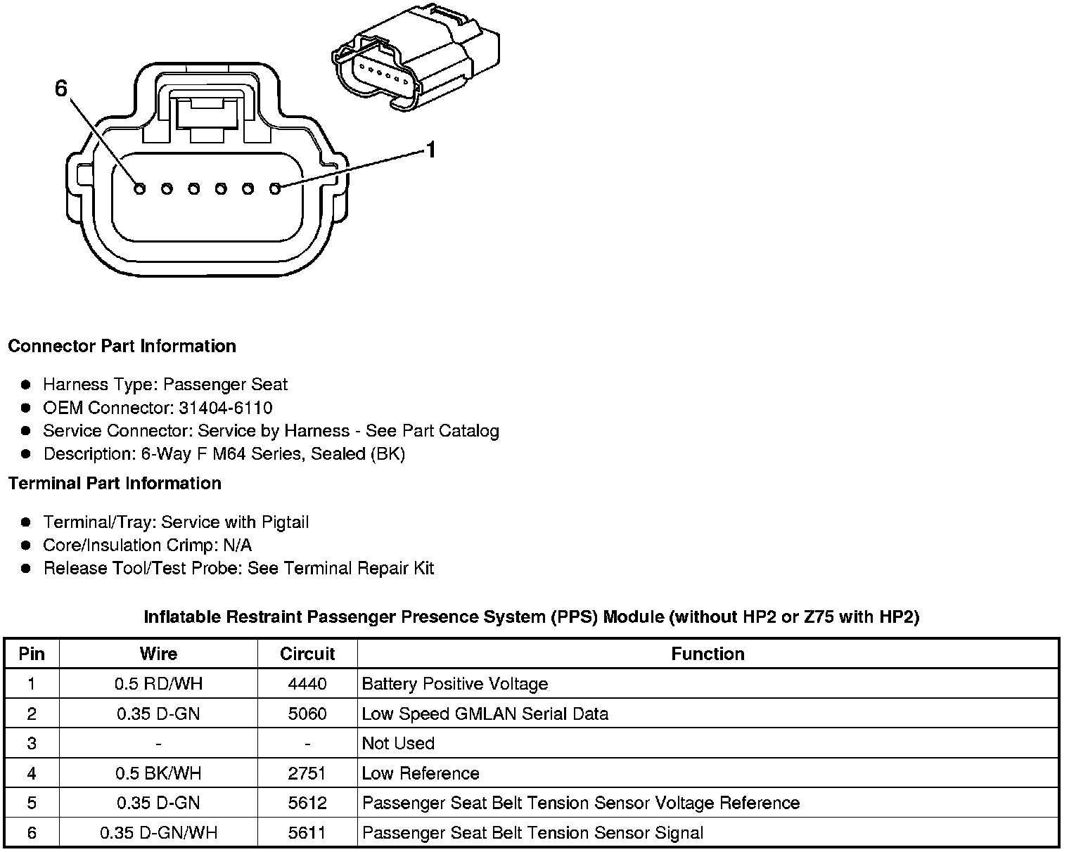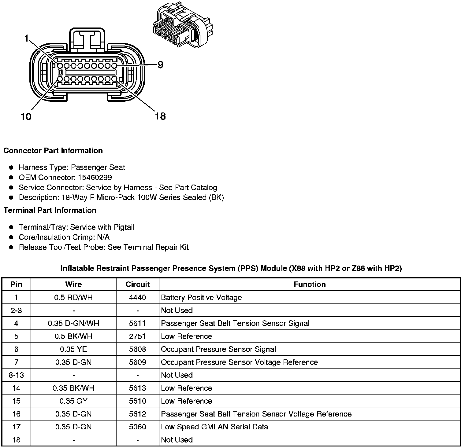 Inflatable Restraint Passenger Presence System (PPS) Module (without HP2 or Z75 with HP2)