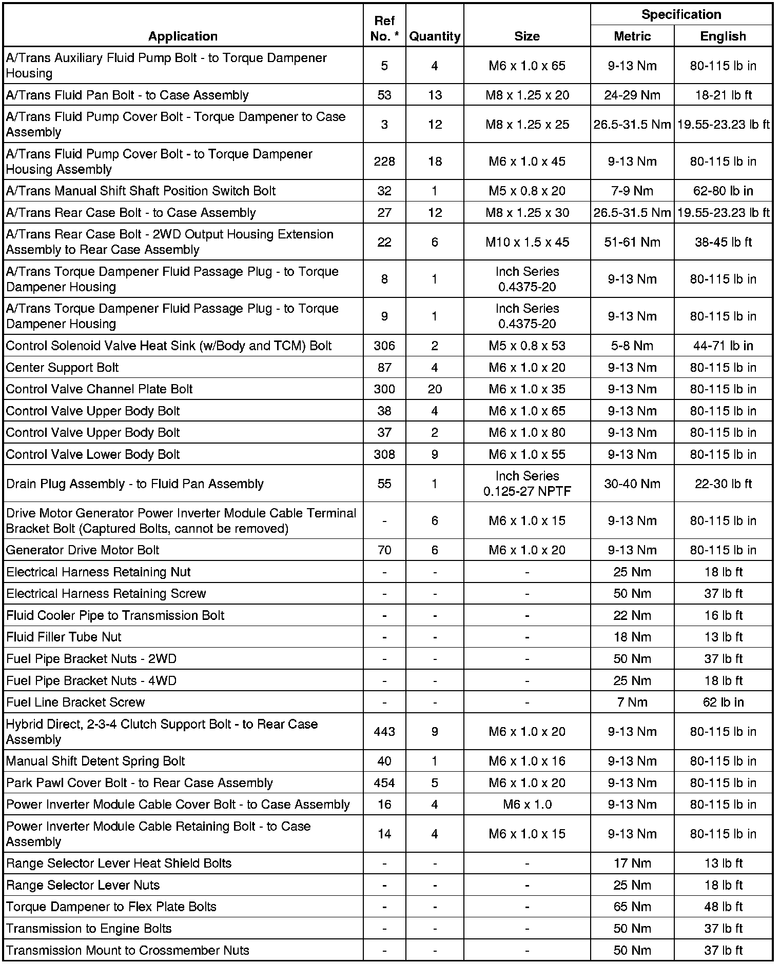 Fastener Tightening Specifications