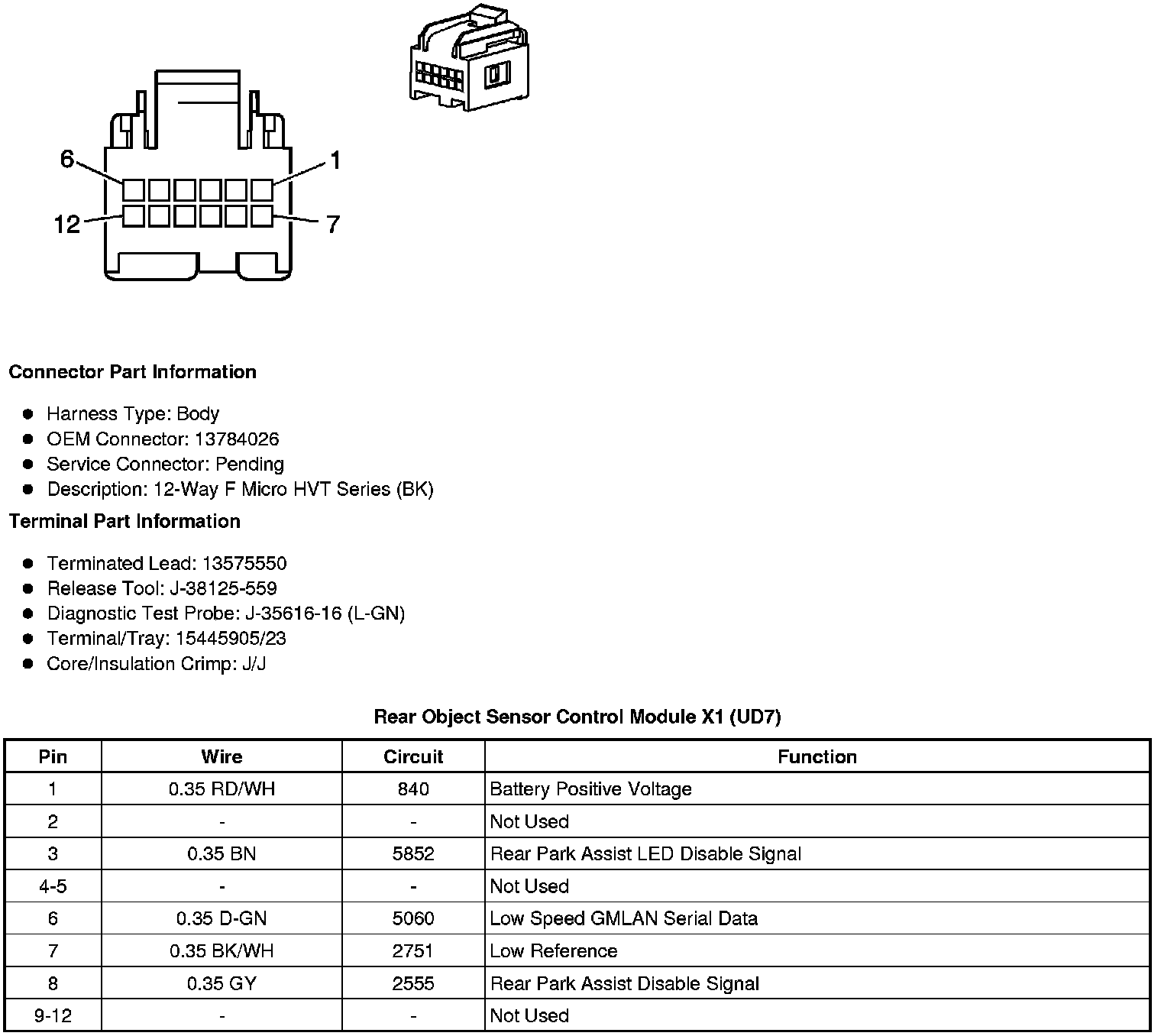 Rear Object Sensor Control Module X1 (UD7)
