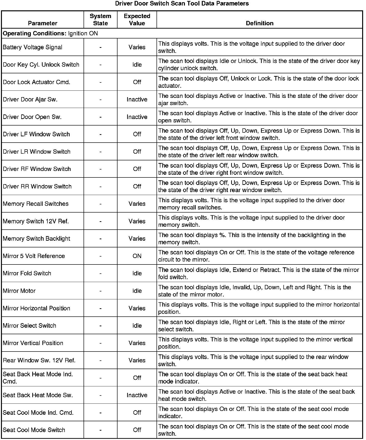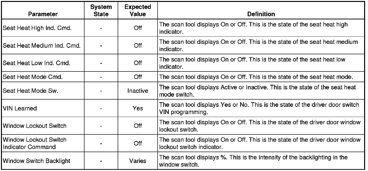 Door Lock Control Module Scan Tool Information (Driver Door Switch)
