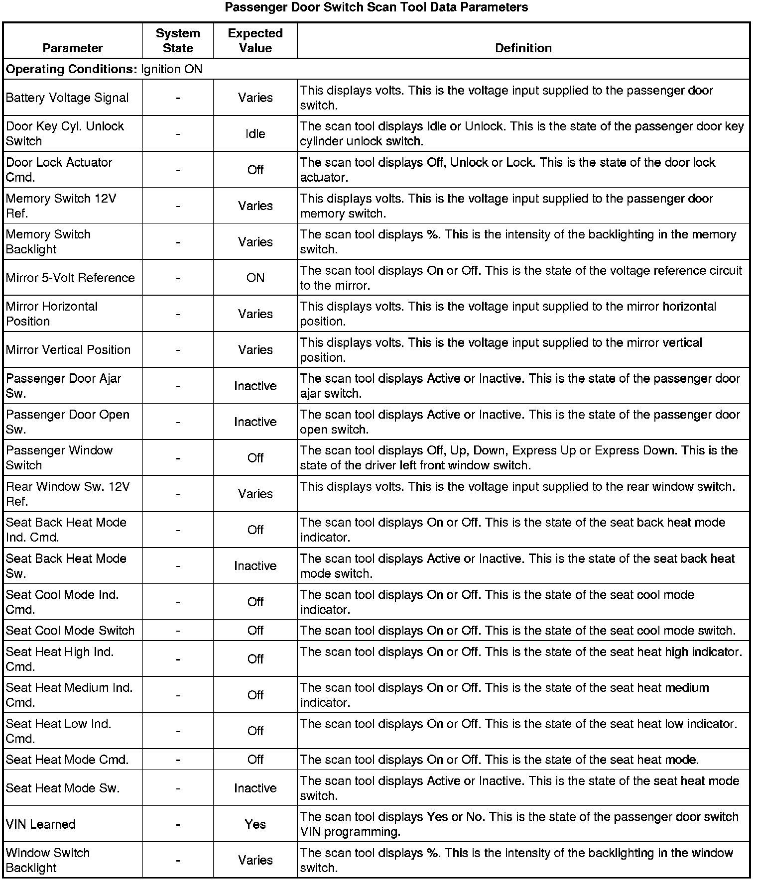 Door Lock Control Module Scan Tool Information (Passenger Door Switch)
