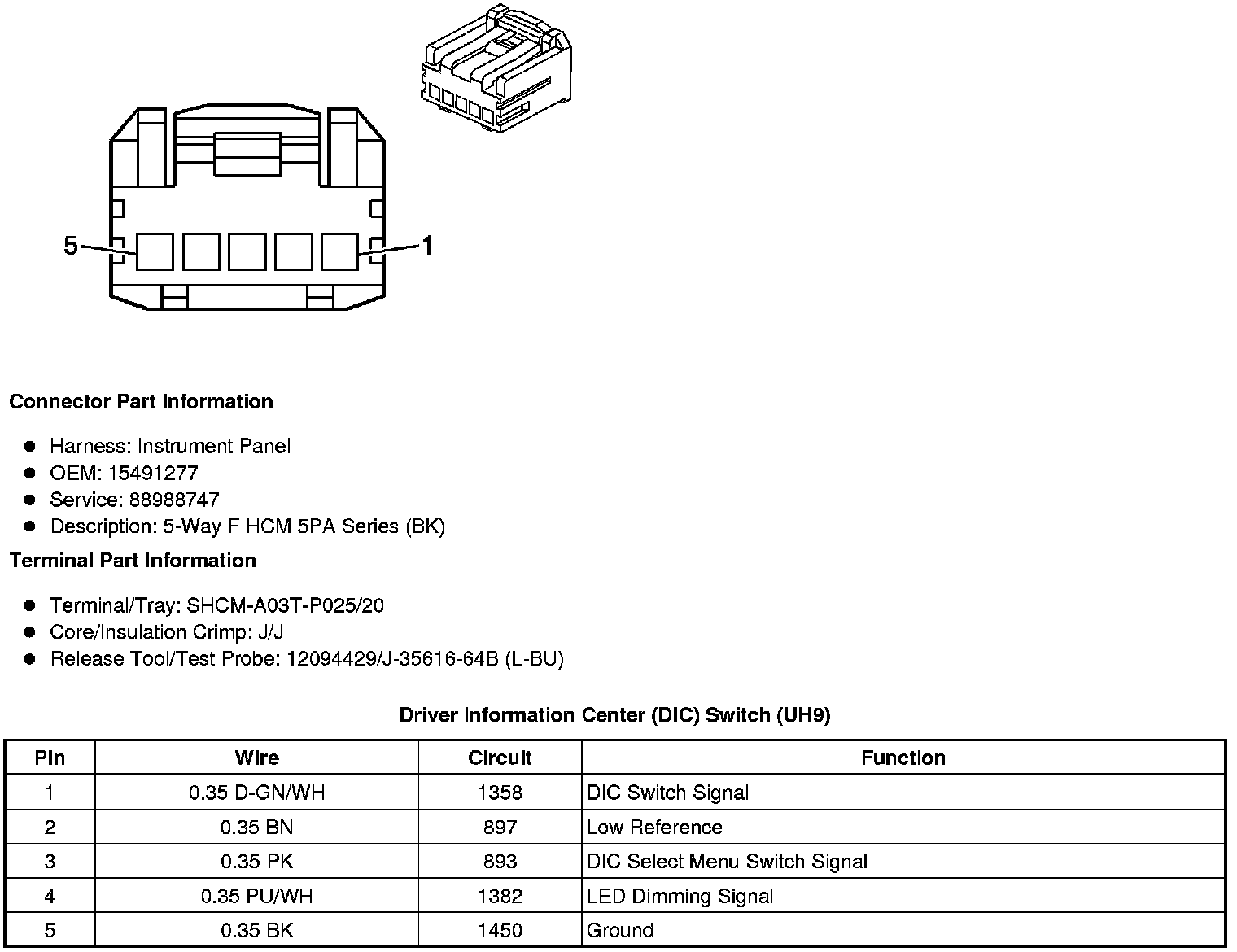 Driver Information Center (DIC) Switch (UH9)