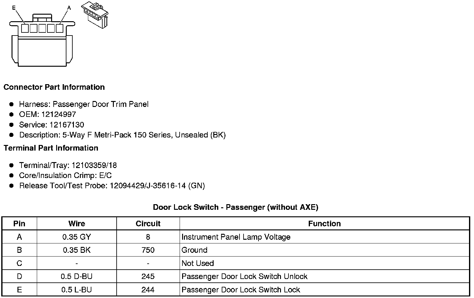 Door Lock/Window Switch - Passenger X1 (AXE)