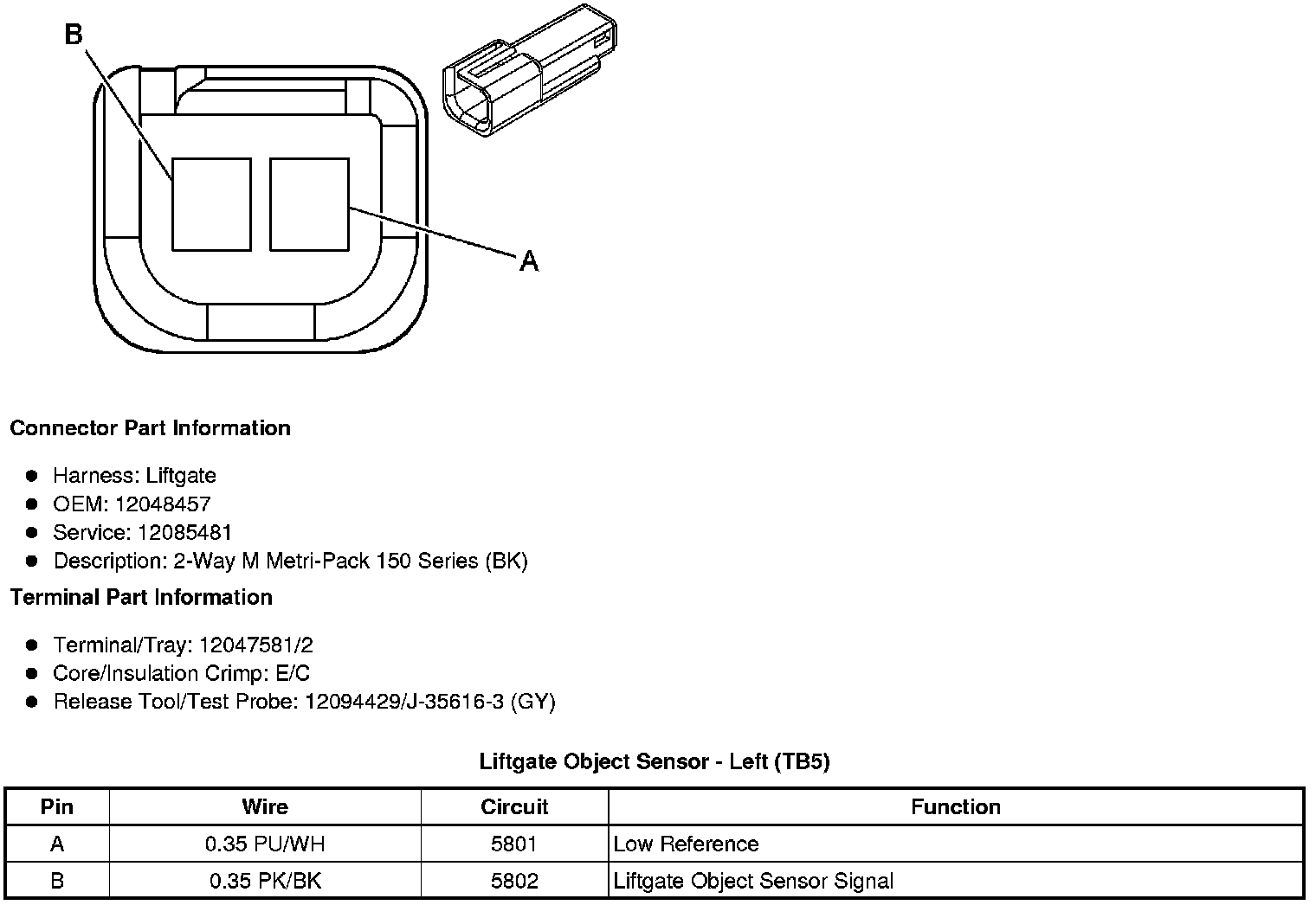 Liftgate Object Sensor - Left (TB5)