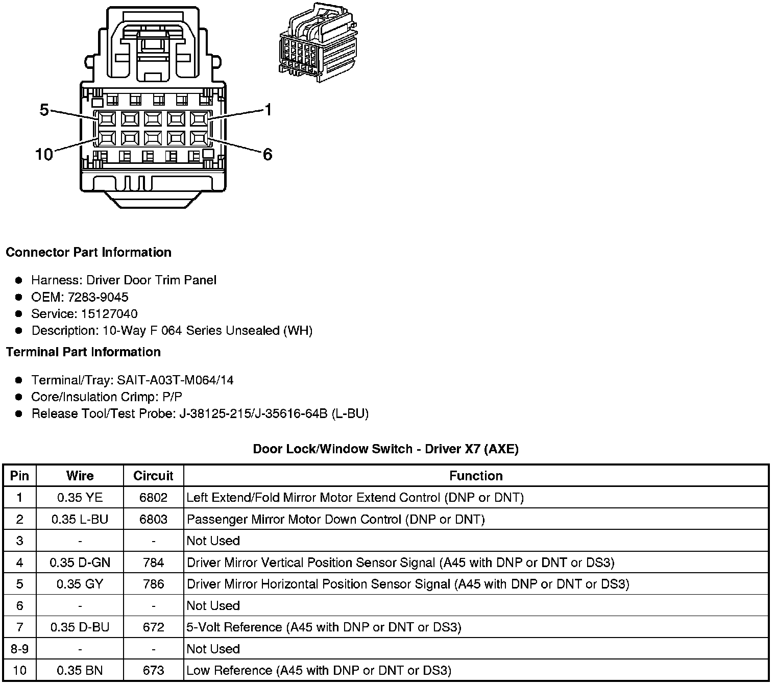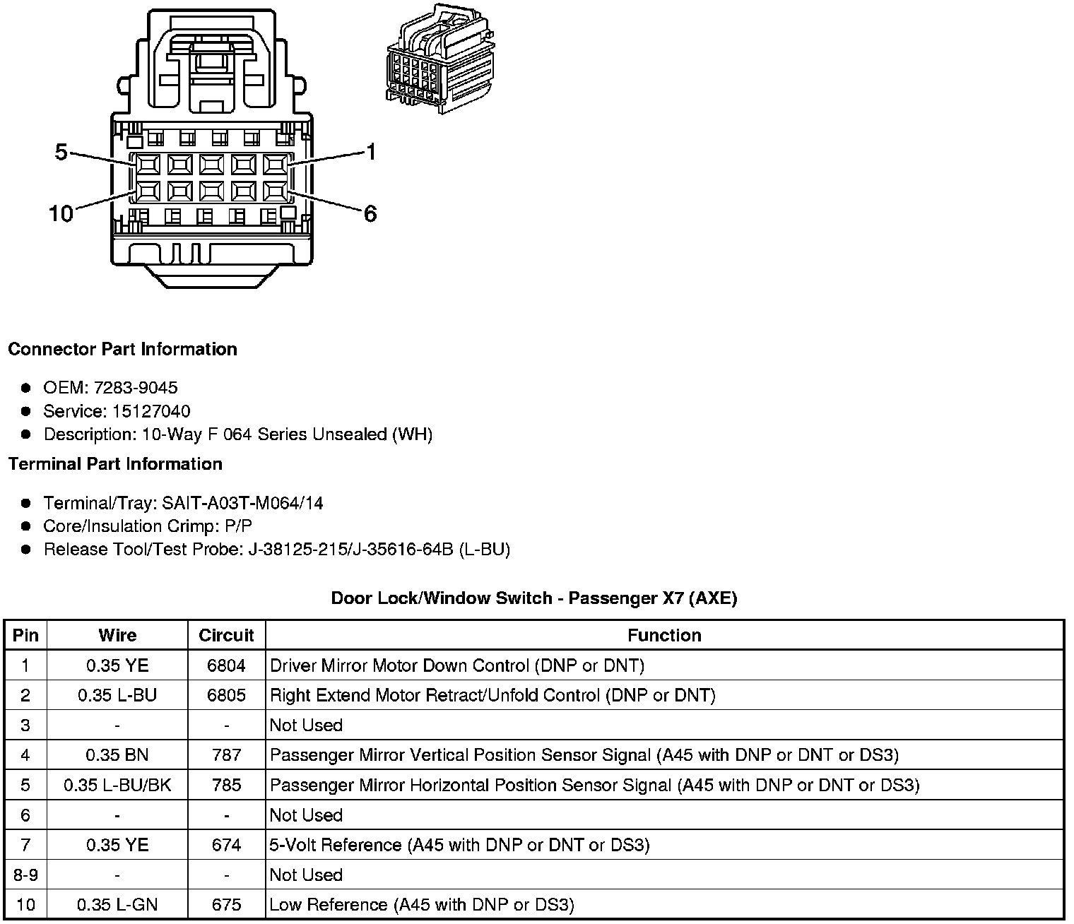 Door Lock/Window Switch - Passenger X3 (AXE)