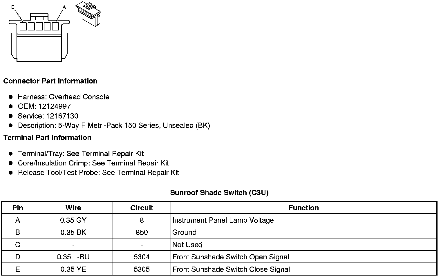 Sunroof Shade Switch (C3U)