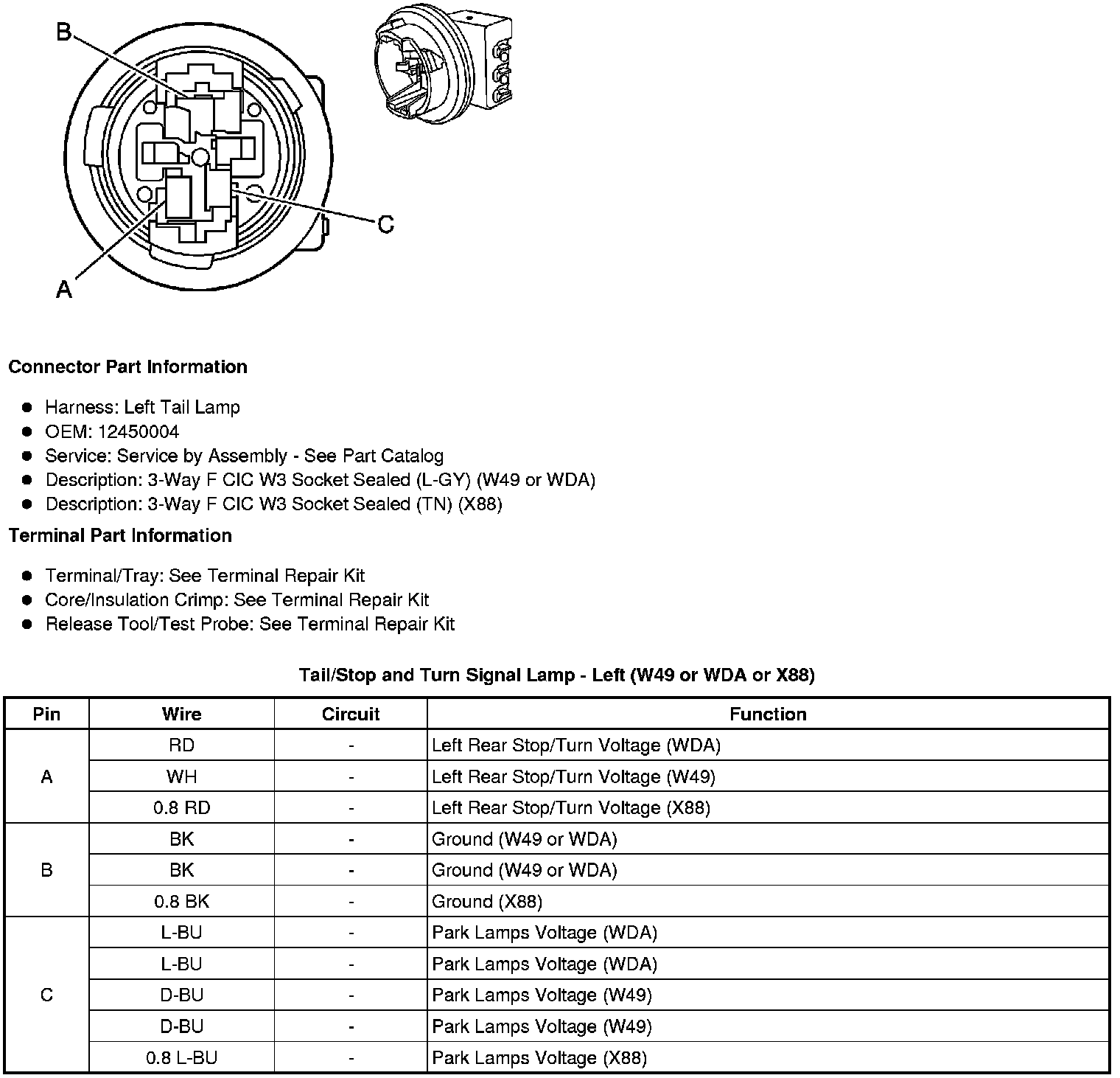 Tail/Stop and Turn Signal Lamp - Left (W49 or WDA or X88)
