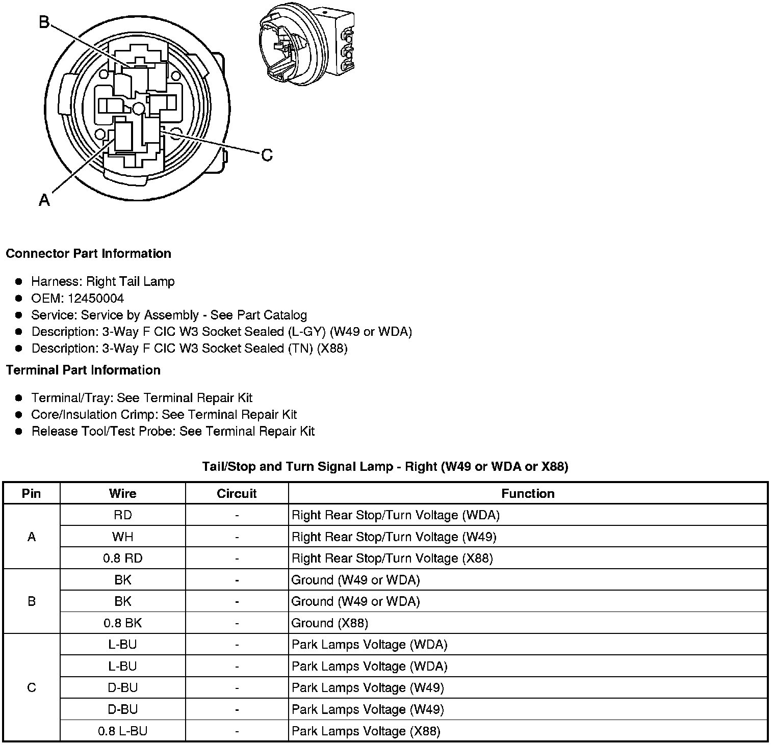 Tail/Stop and Turn Signal Lamp - Right (W49 or WDA or X88)
