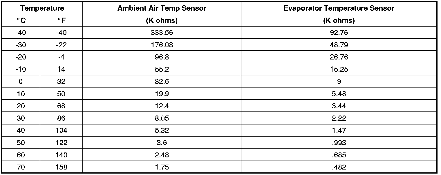 Sensor Resistance Table