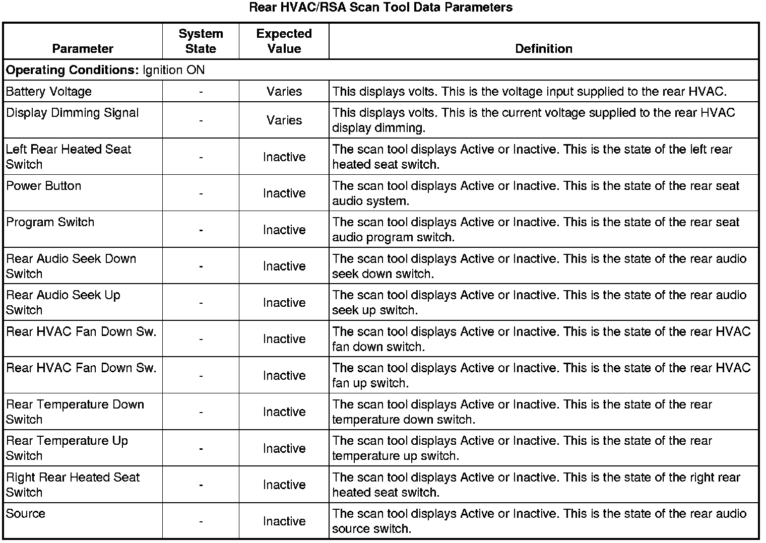 Auxiliary Heater and Air Conditioning Control Module Scan Tool Information
