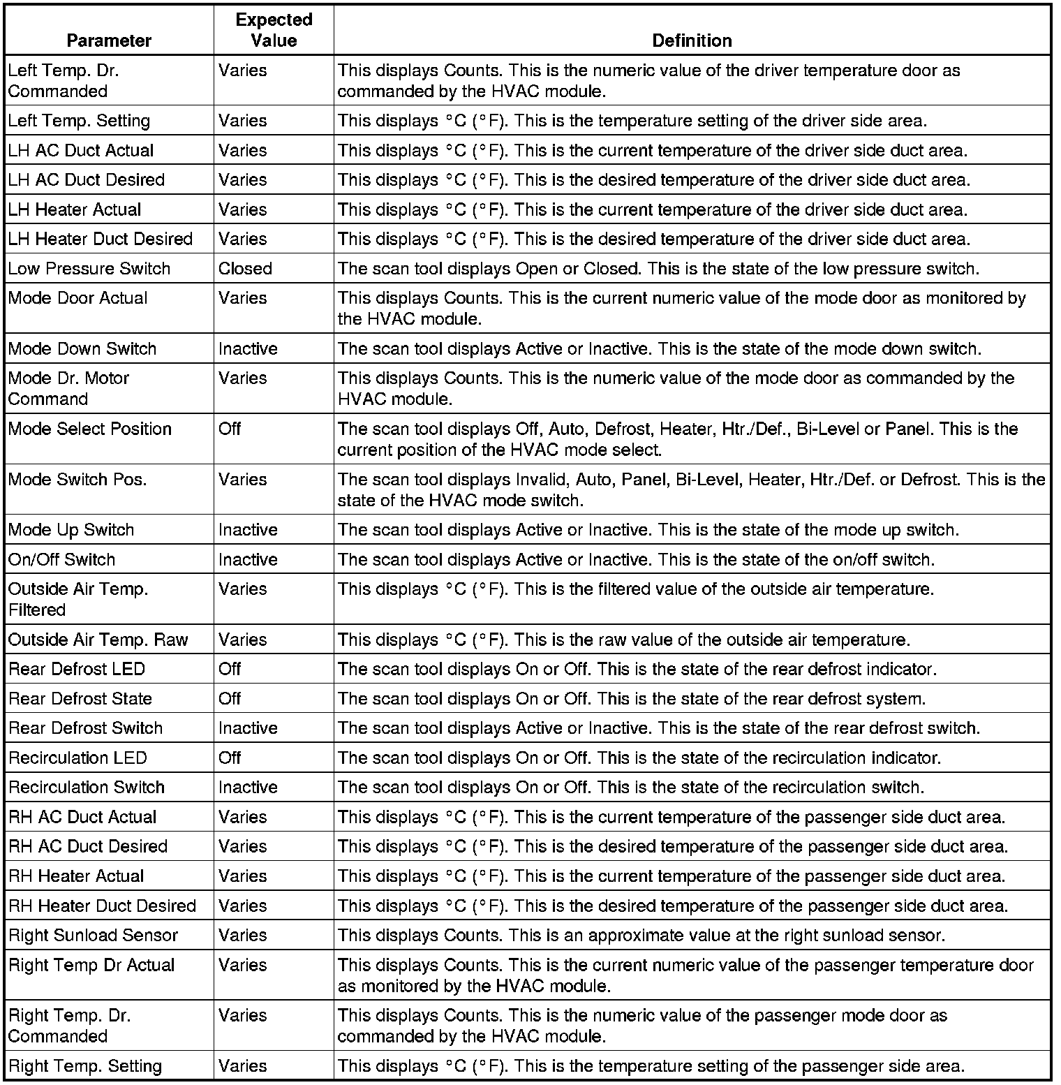 Heating, Ventilation and Air Conditioning Control Module Scan Tool Information